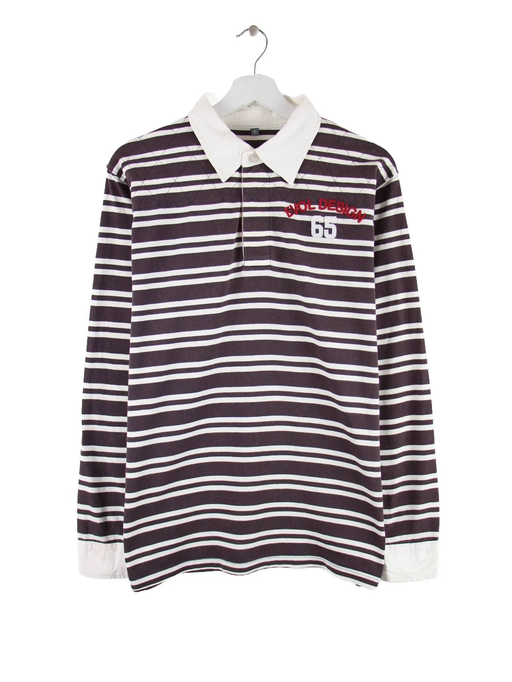 Vintage Stripe Langarm Polo Braun M