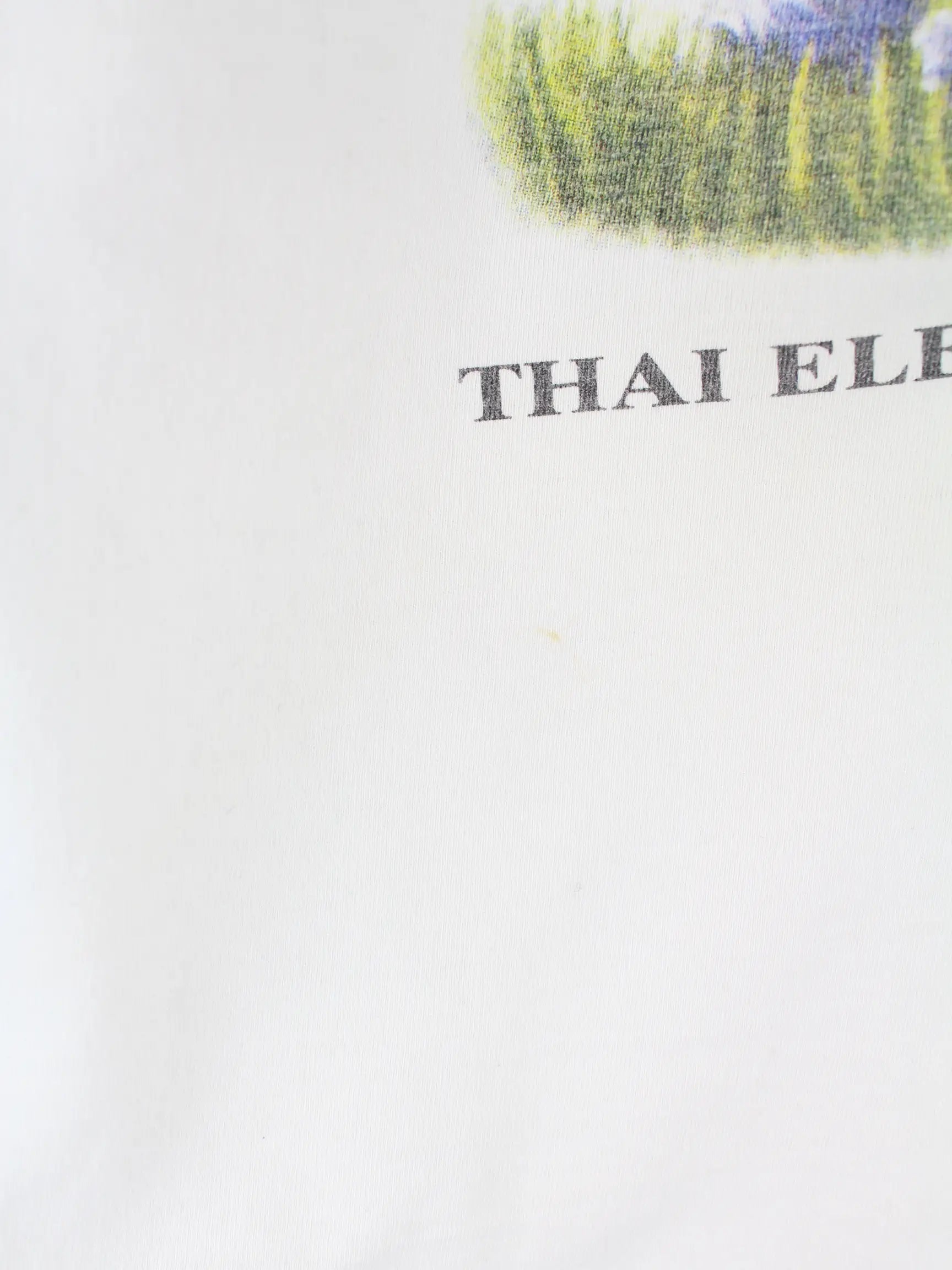 Vintage Thailand Elephant Print T-Shirt Weiß L
