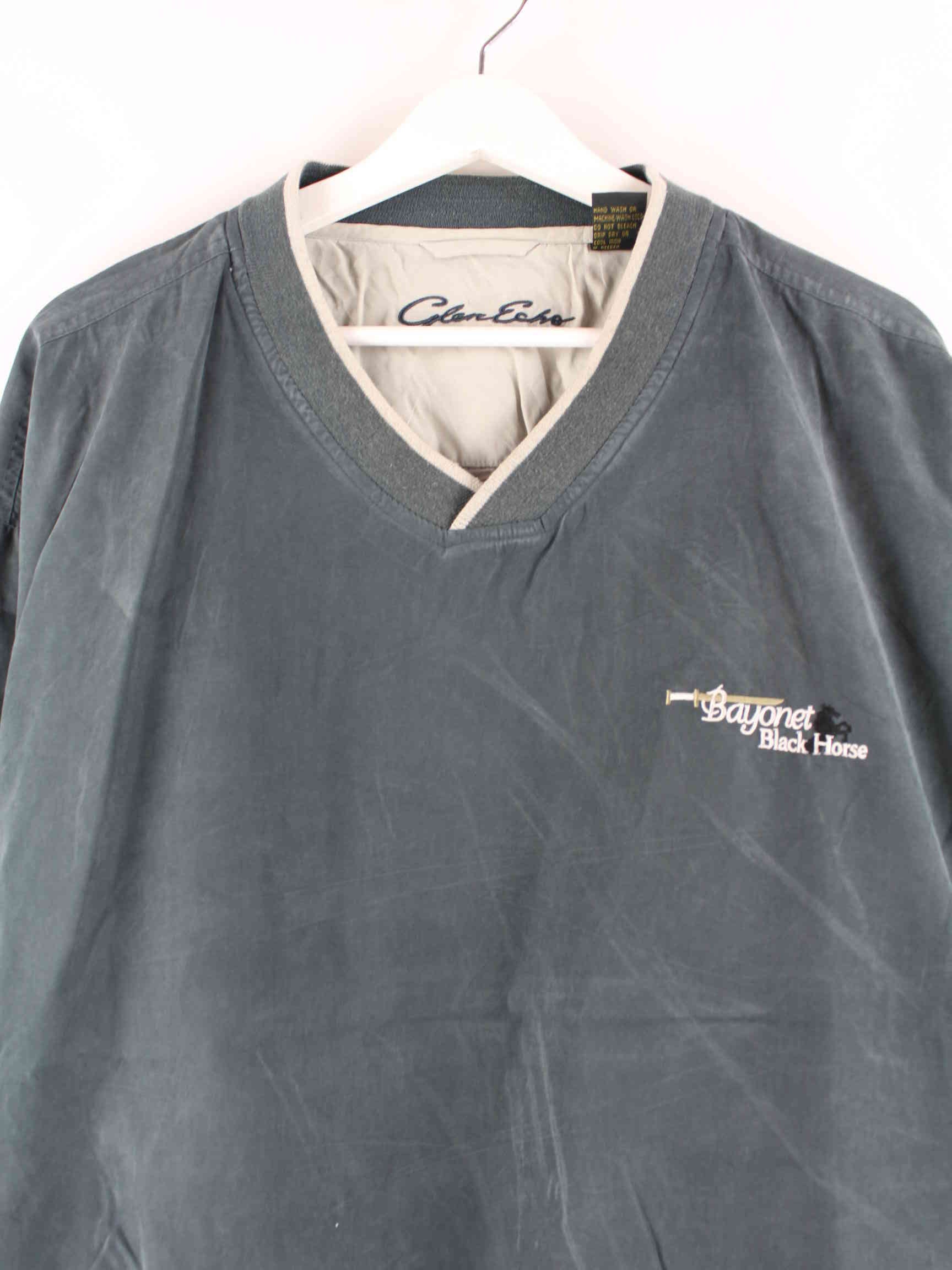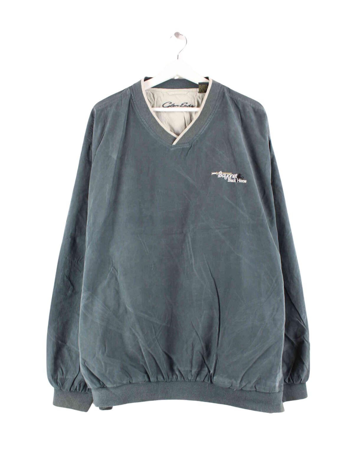Gray vintage sweater in size XXL. It is made of synthetic material and is in good condition in stock.