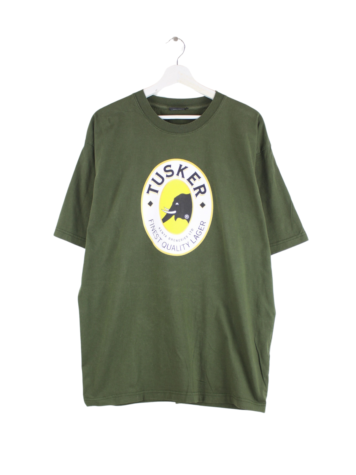 Vintage T-shirt in size XL. It is made of cotton and comes in green. With a chic Tusker print.