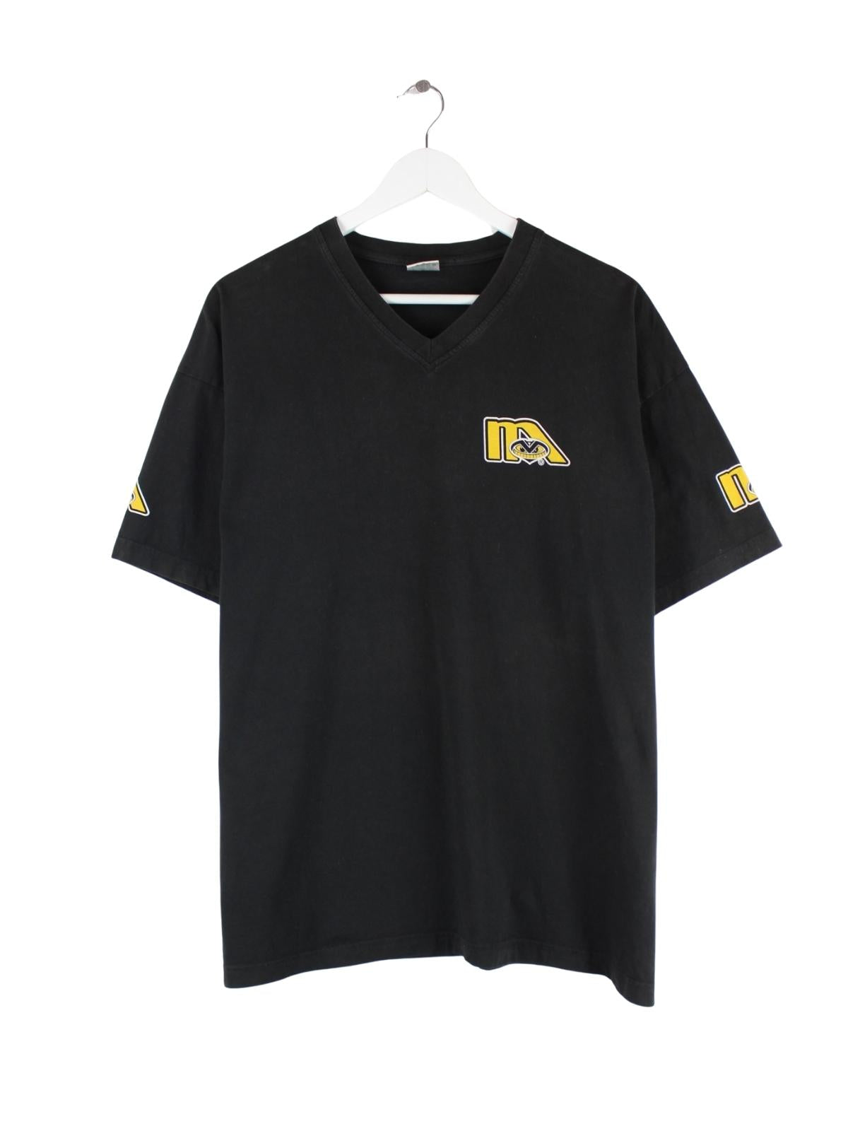 Vintage V-Neck Madhead Print T-Shirt Schwarz XL