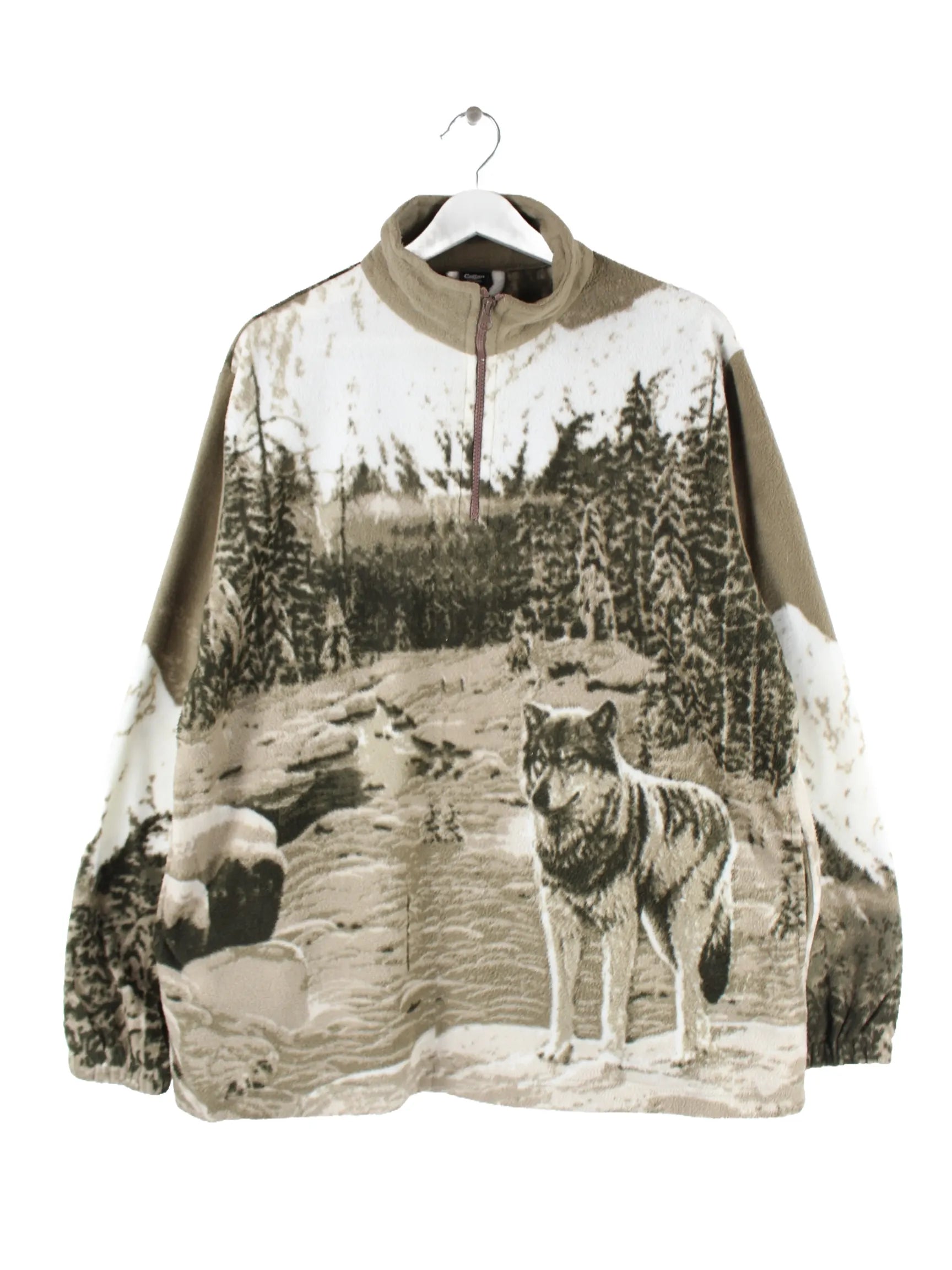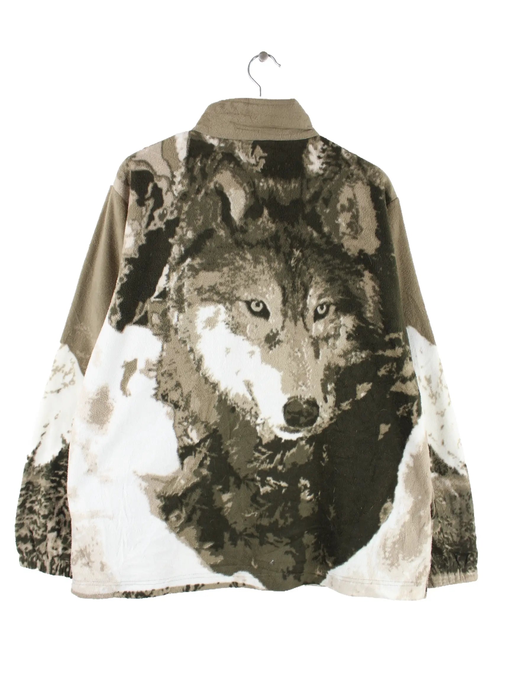 Vintage Wolf Pattern Half Zip Fleece Jacke Braun M