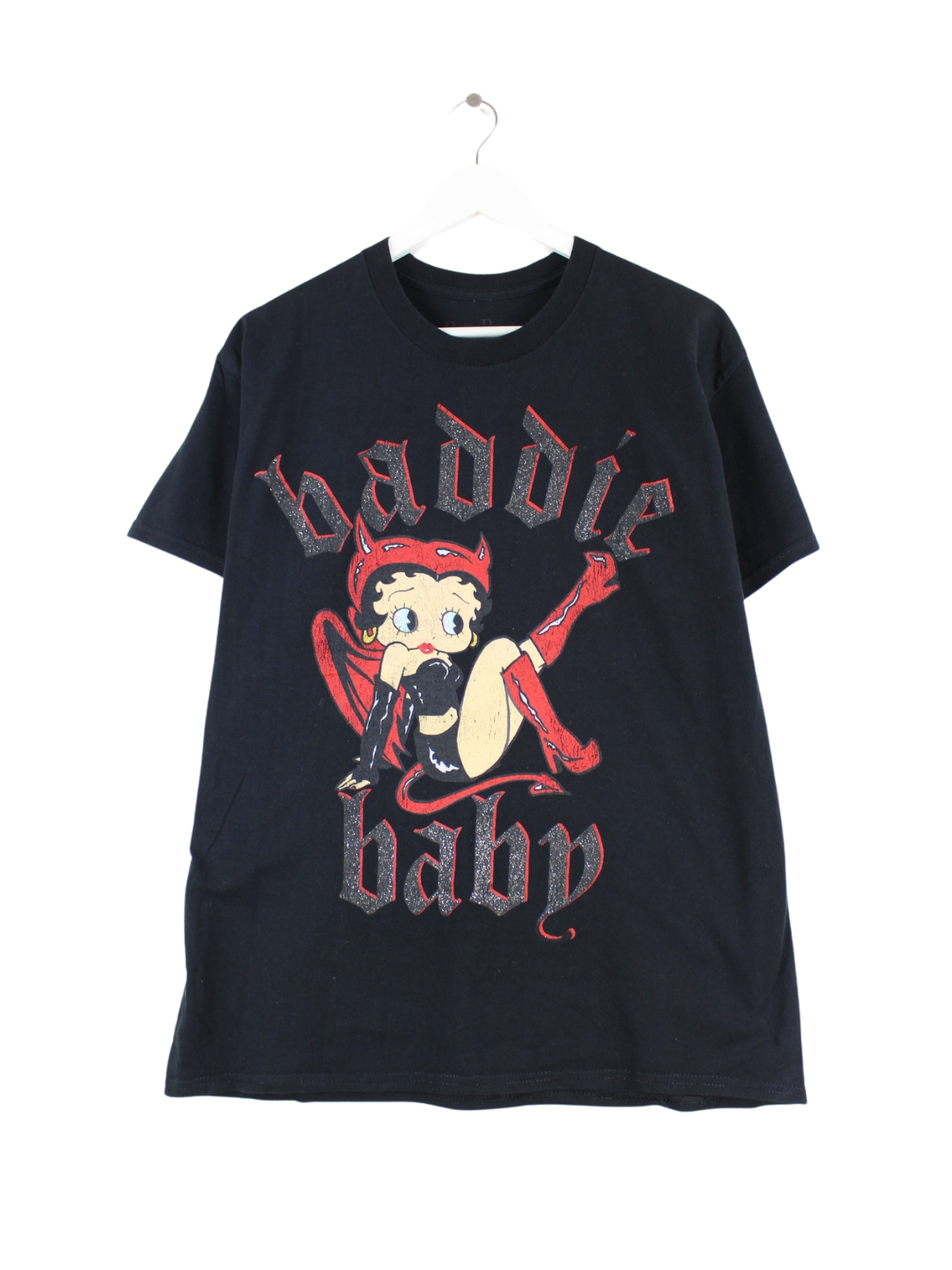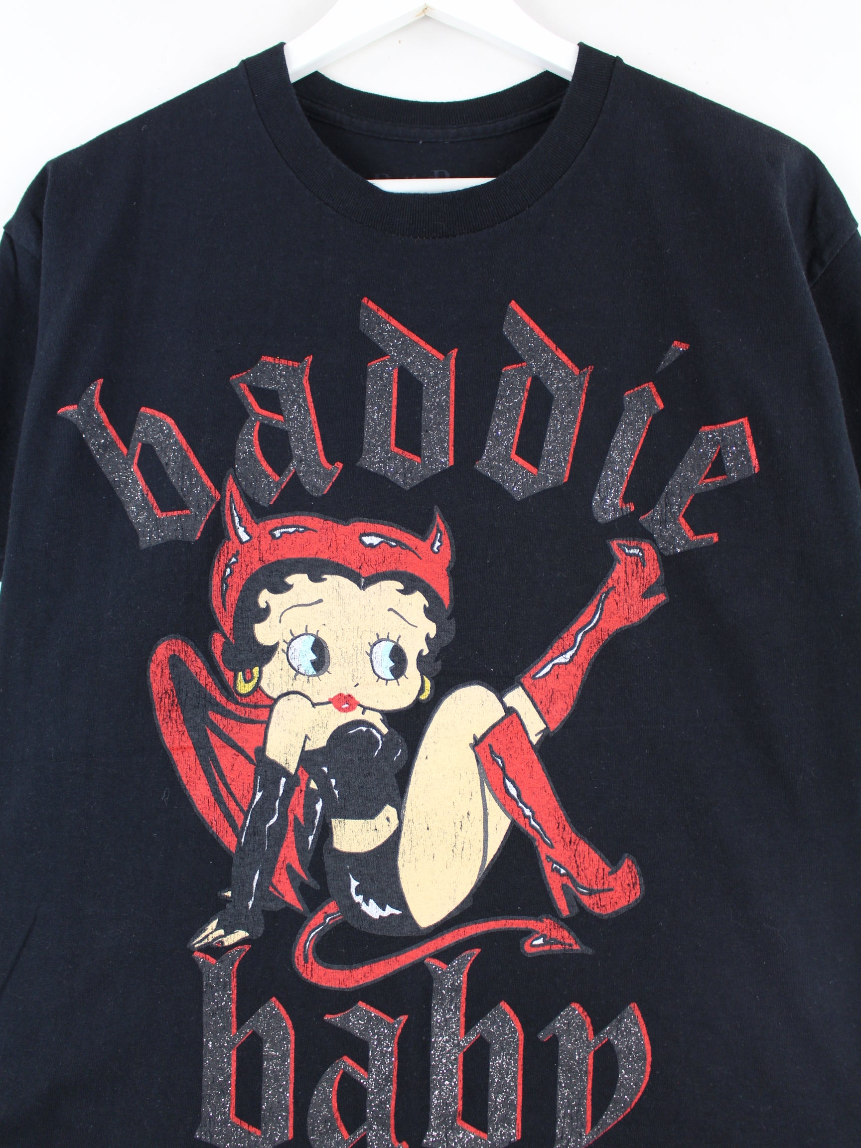 Vintage y2k Betty Boop Baddie Baby Glitter Print T-Shirt Black L