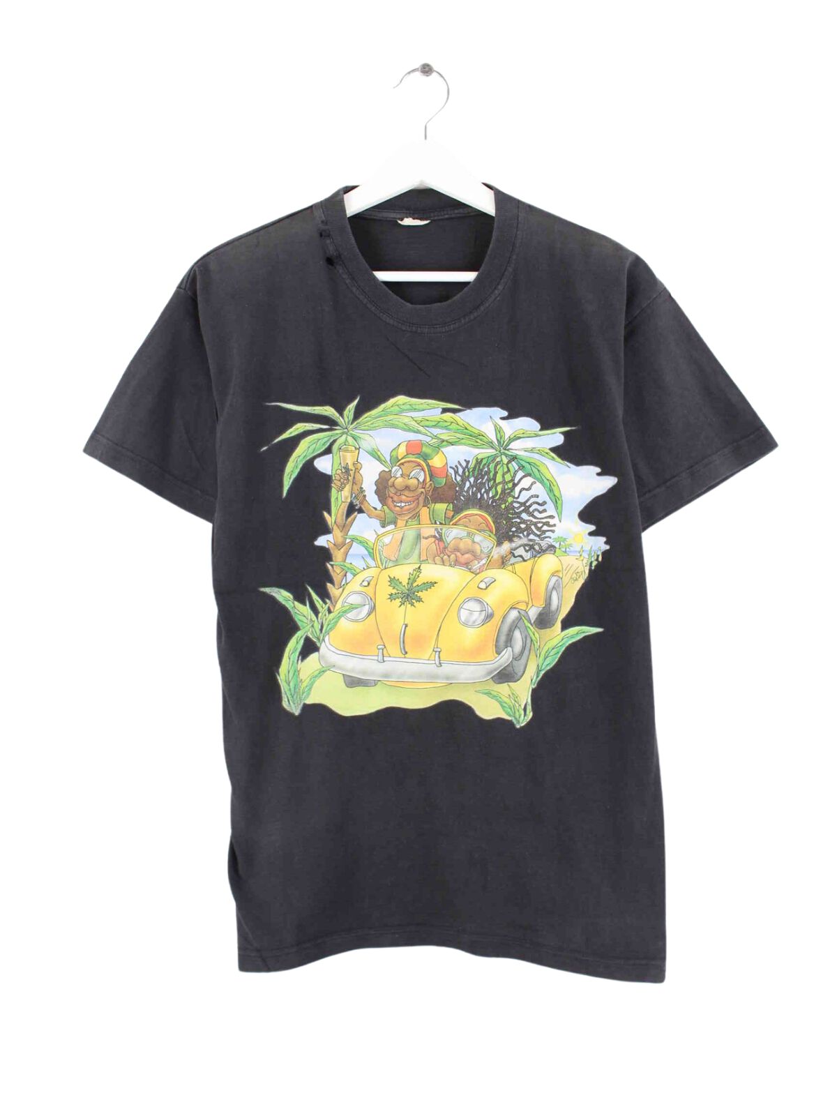 Black vintage t-shirt from the early 2000s in size S. It is made of cotton. We would describe the condition as 'fine' (see pictures). With beautiful y2k print.