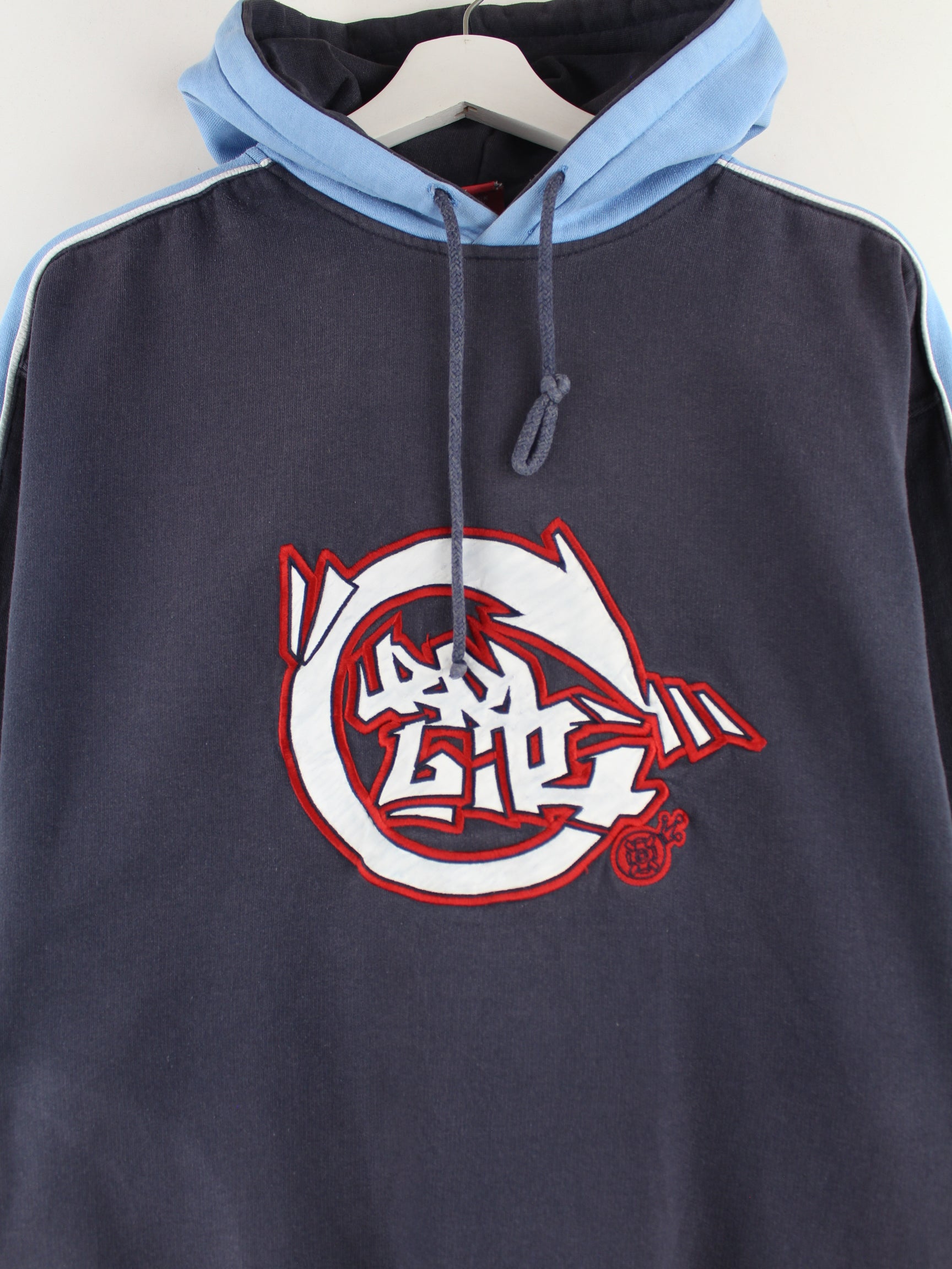Blue vintage hoodie with embroidery from the early 2000s in size S. It is made from a cotton blend and is in very good condition.
