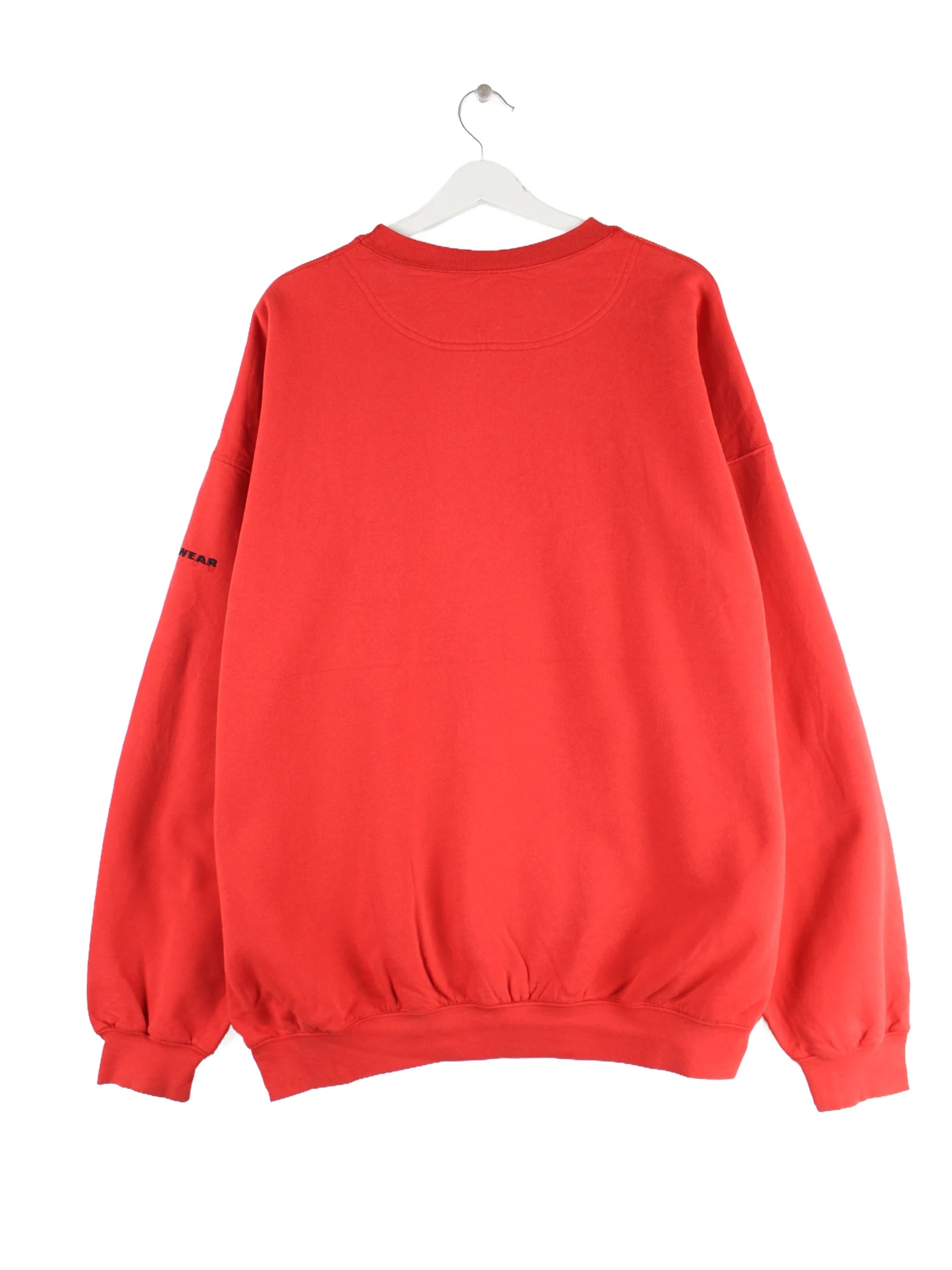 Roter Vintage Sweater aus Anfang der 2000'er in Größe XXL. Er ist aus einer Baumwollmischung produziert und in sehr gutem Zustand vorrätig.