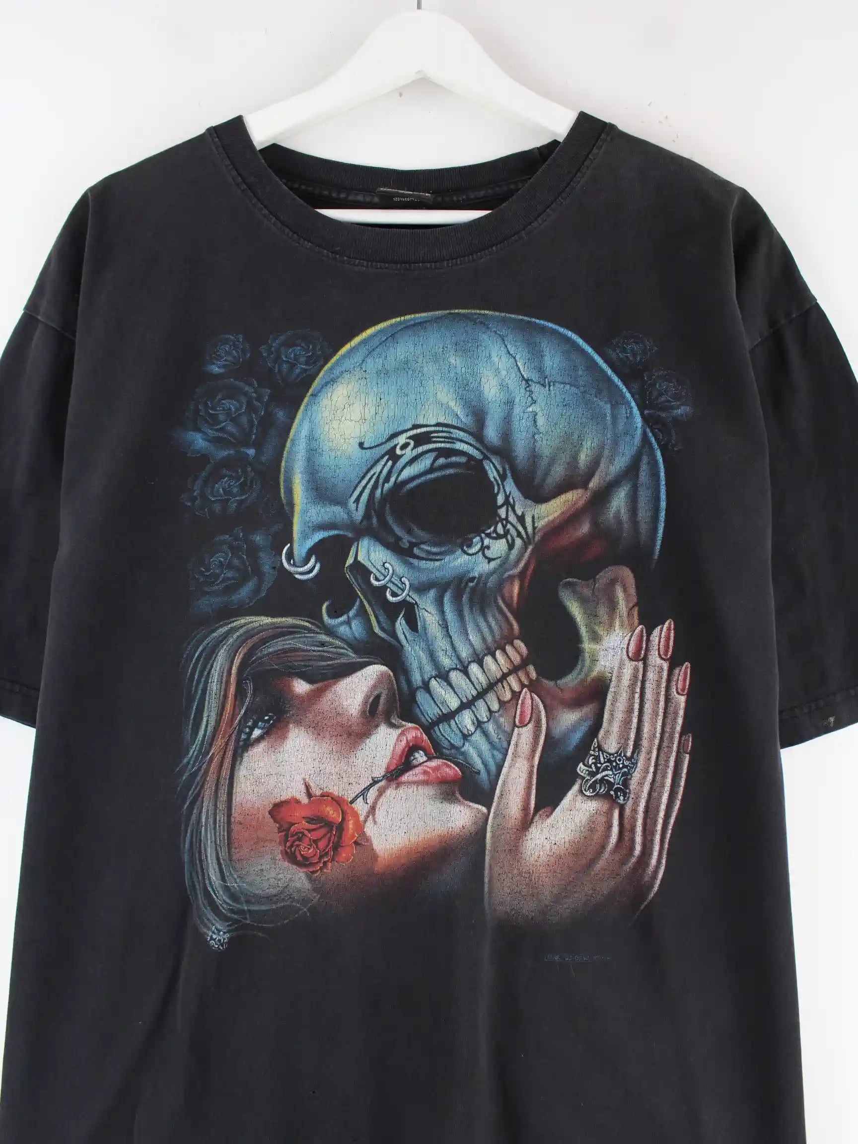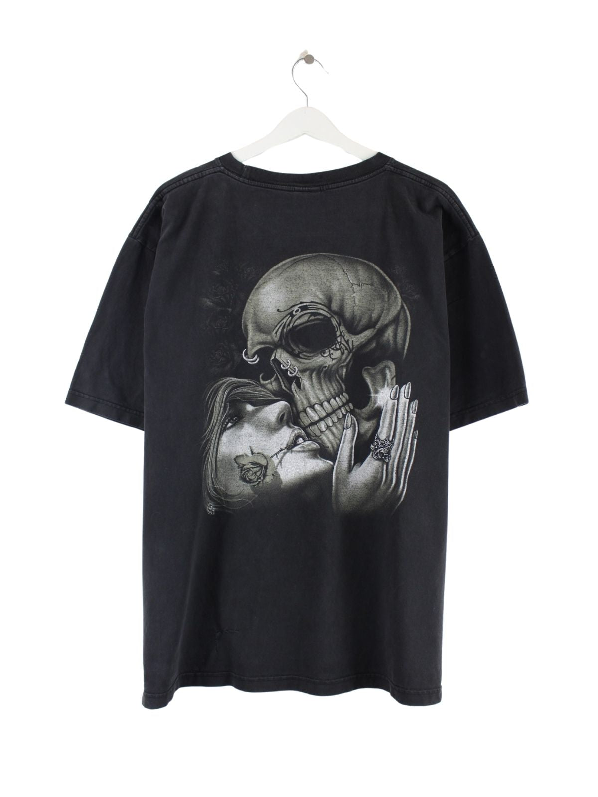 Vintage y2k Skull Print T-Shirt Schwarz XXL