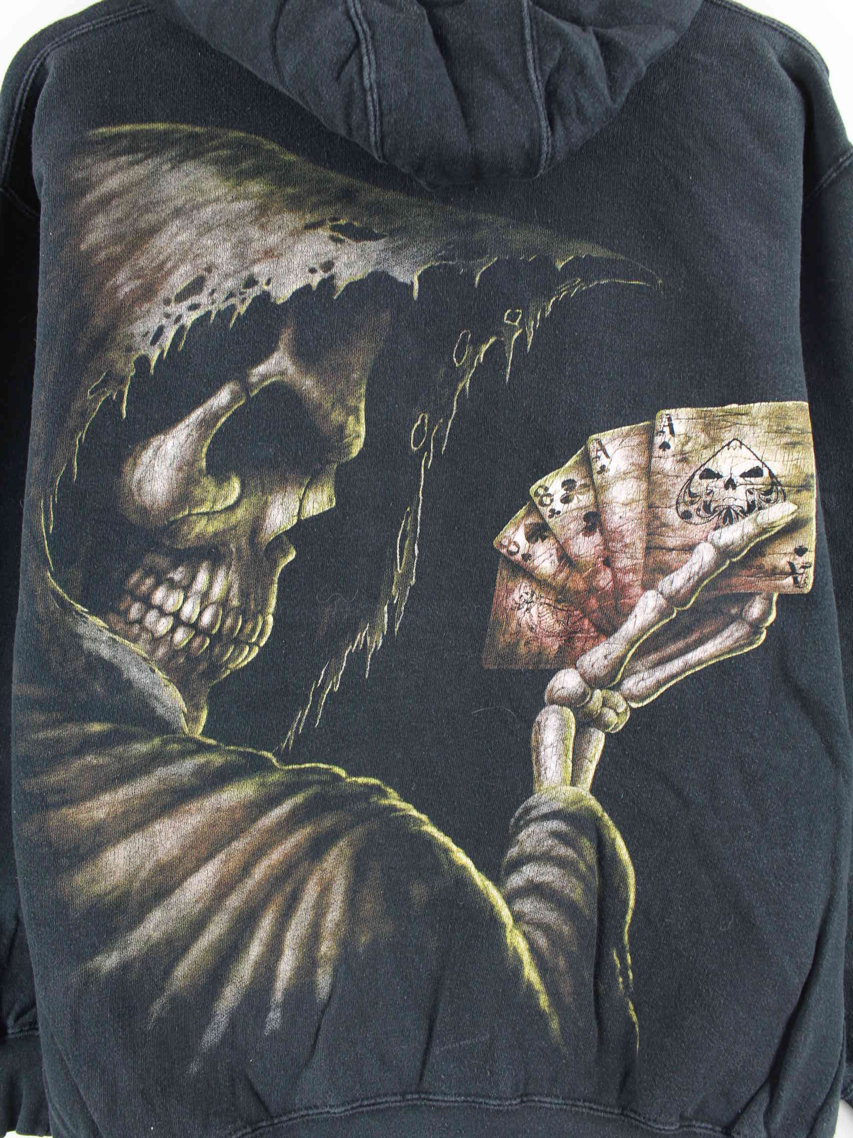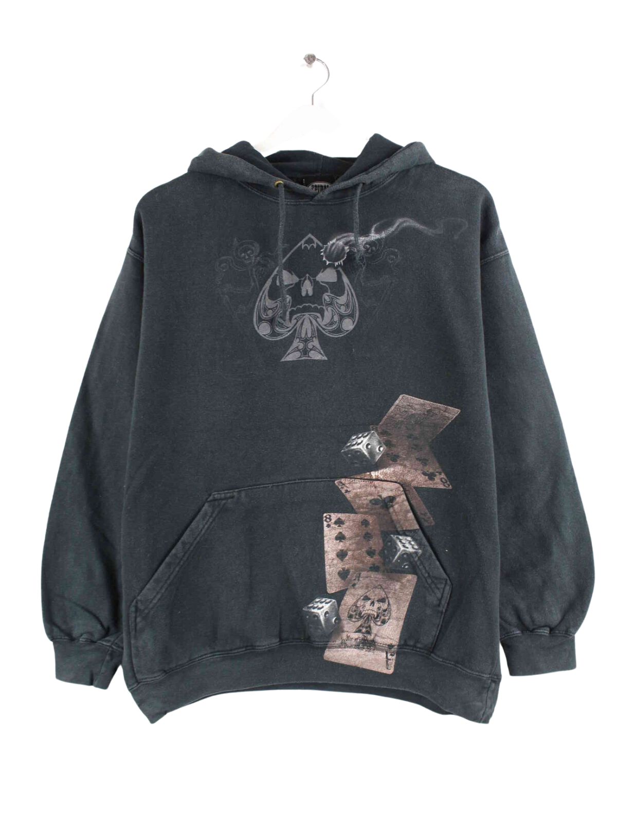 Black vintage hoodie from the early 2000s in size XS. It is made from a cotton blend and is in very good condition. With a chic crazy print.