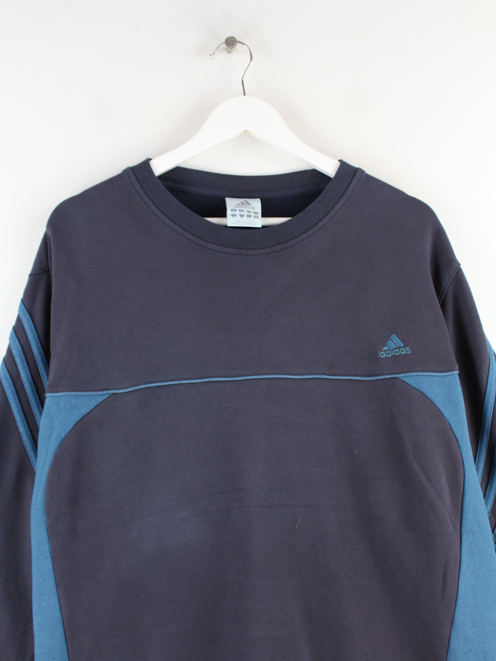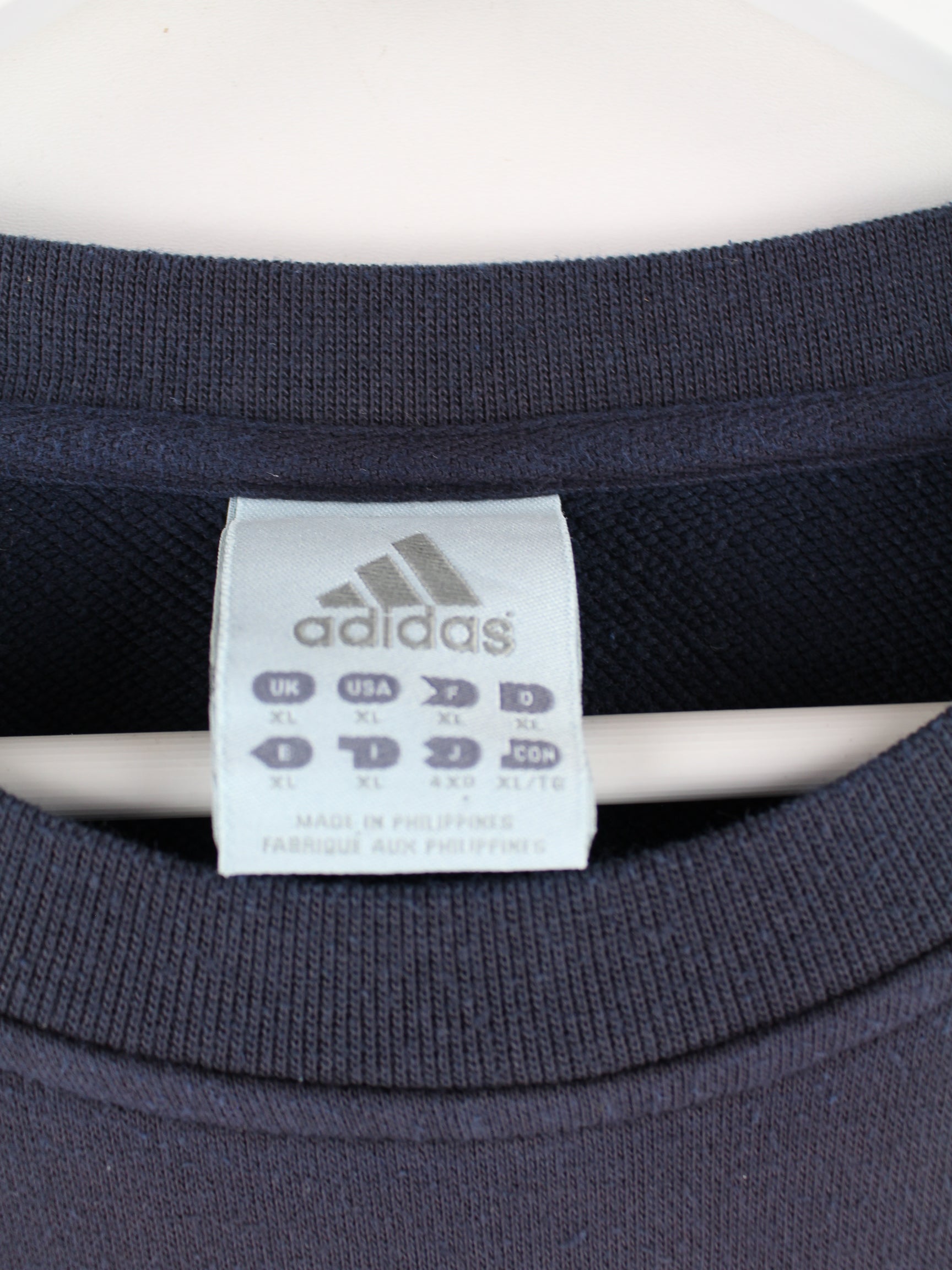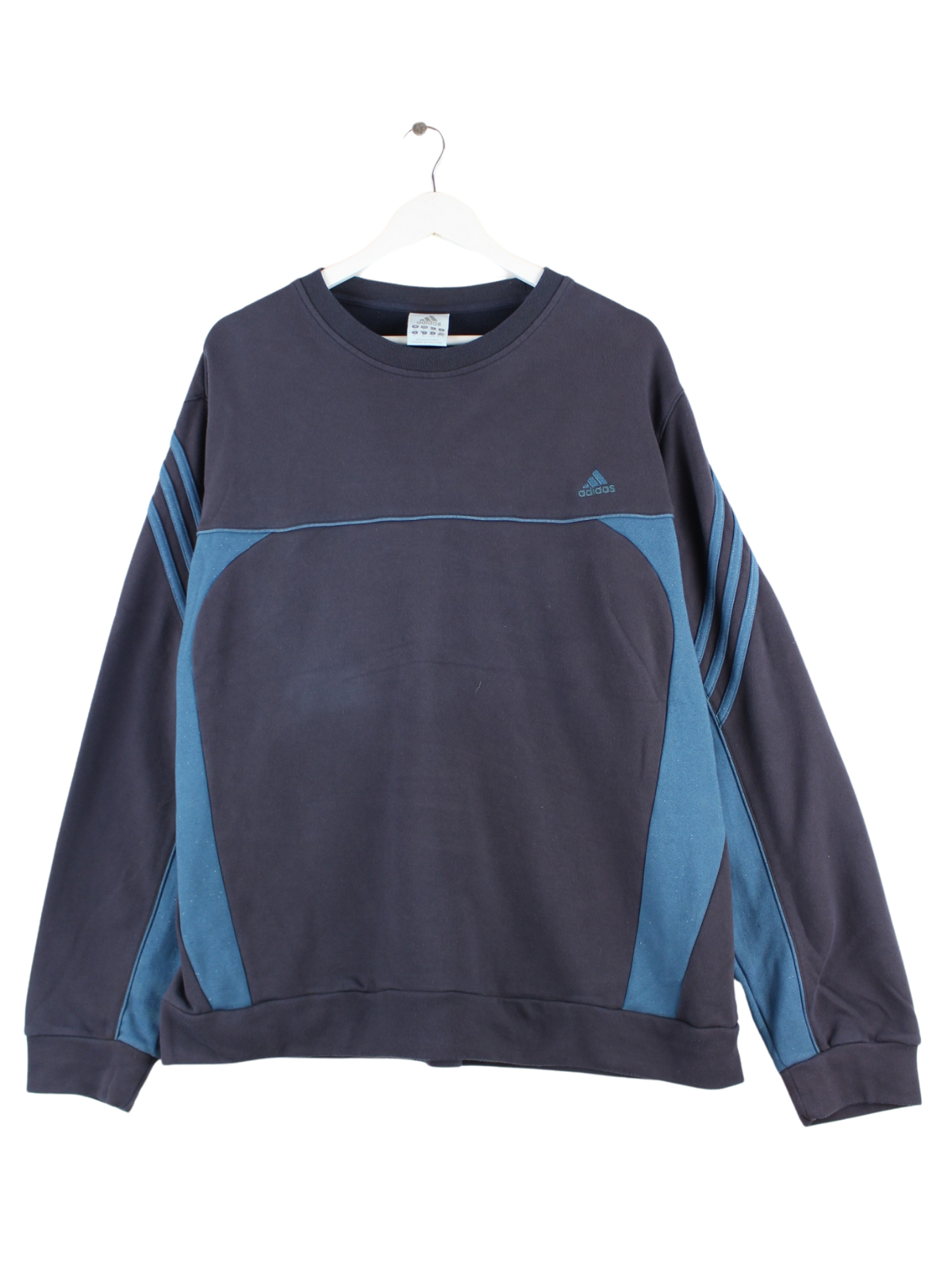 Blauer Sweater des Labels Adidas in Größe XL. Er ist aus einer Baumwollmischung produziert und in sehr gutem Zustand im Angebot.