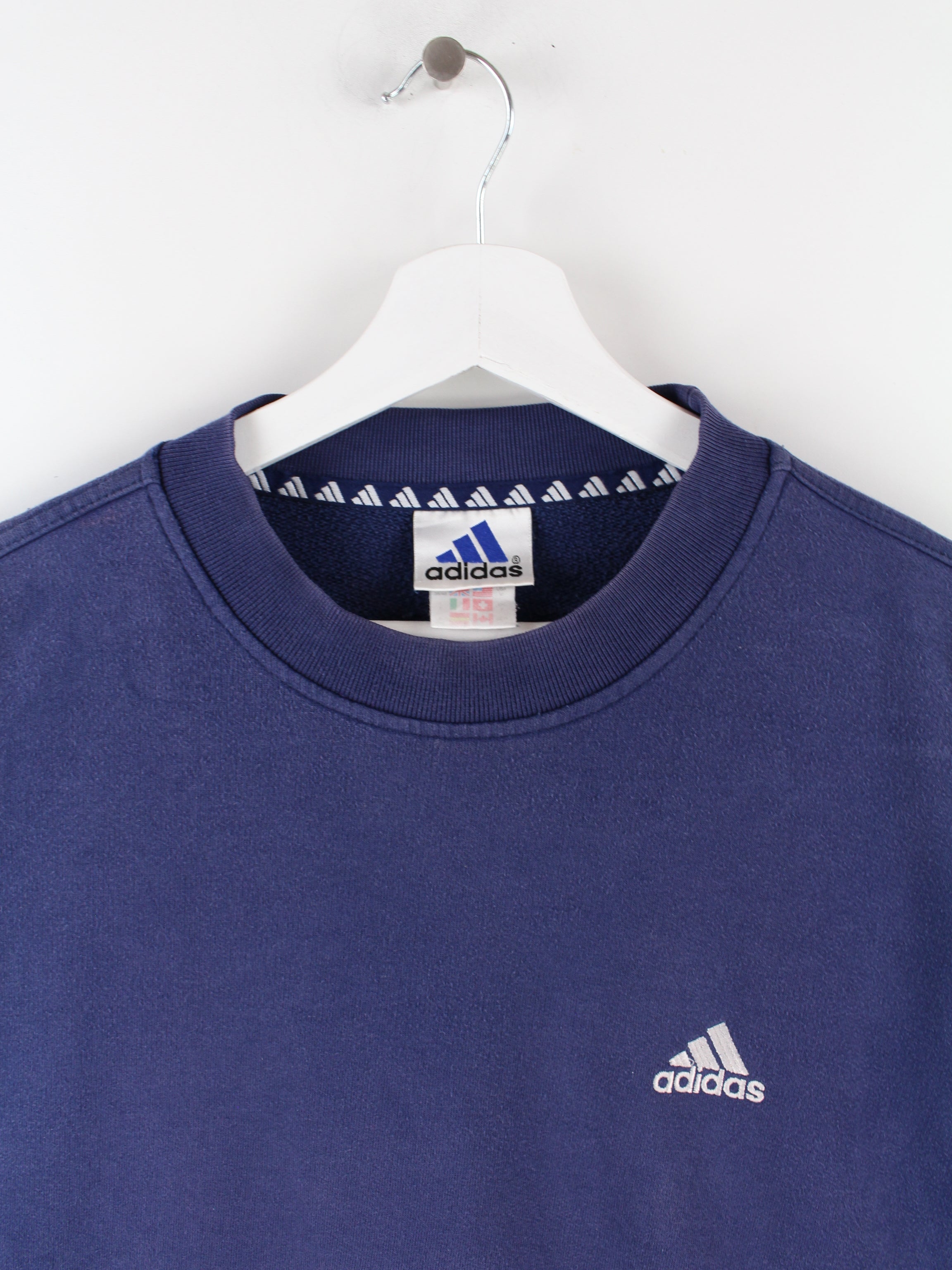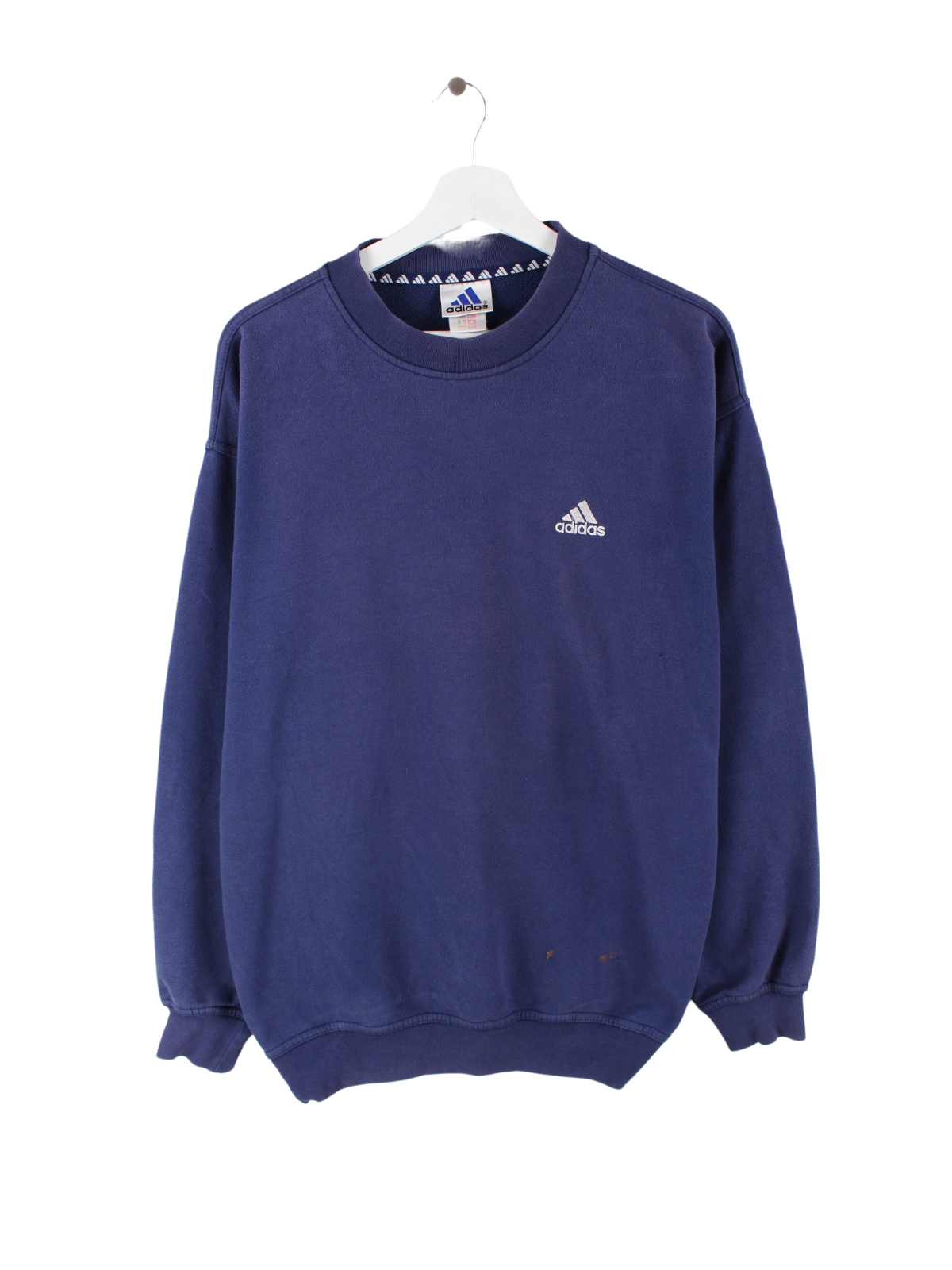 Pull basique Adidas vintage bleu marine des années 90 avec logo brodé.