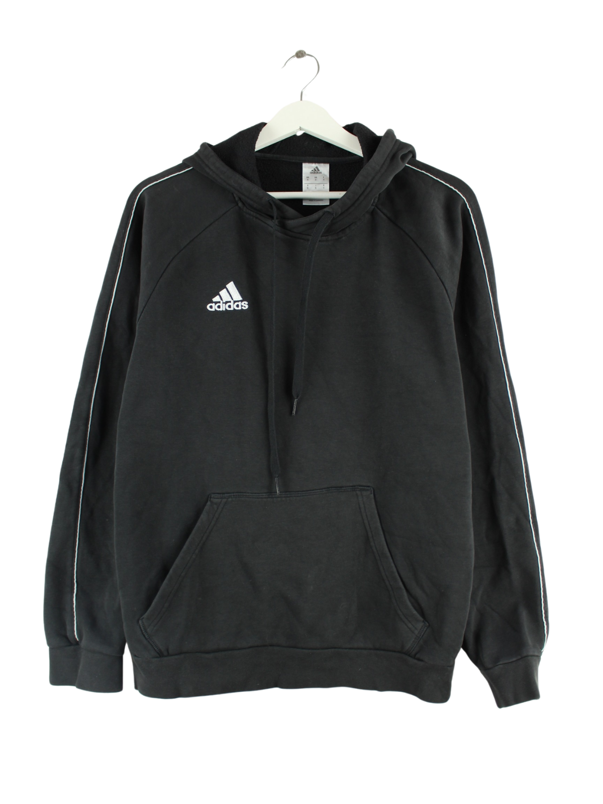 Hoodie von Adidas mit Stickereien in Größe S. Er ist aus einer Baumwollmischung produziert und in Schwarz zu bekommen.