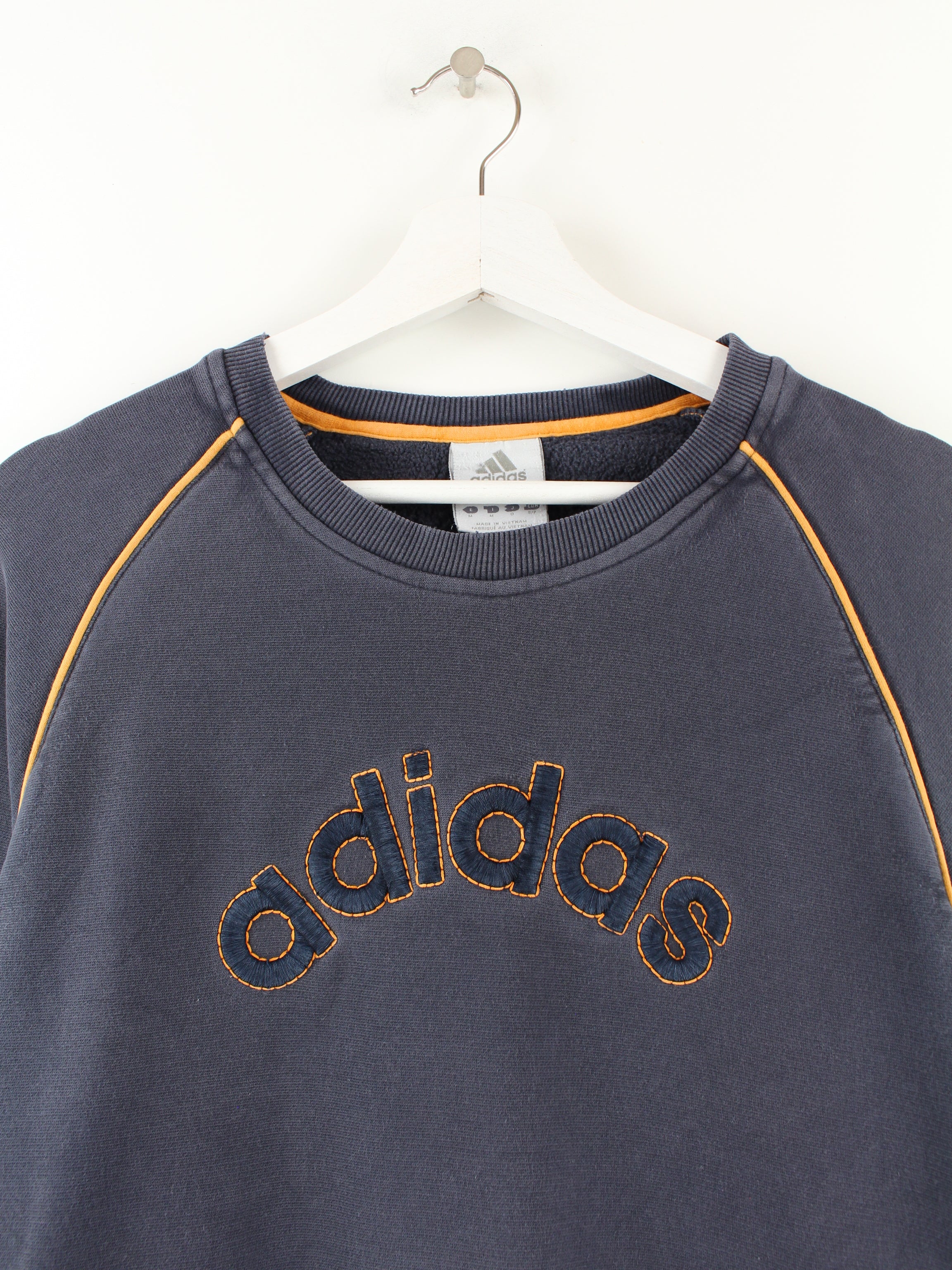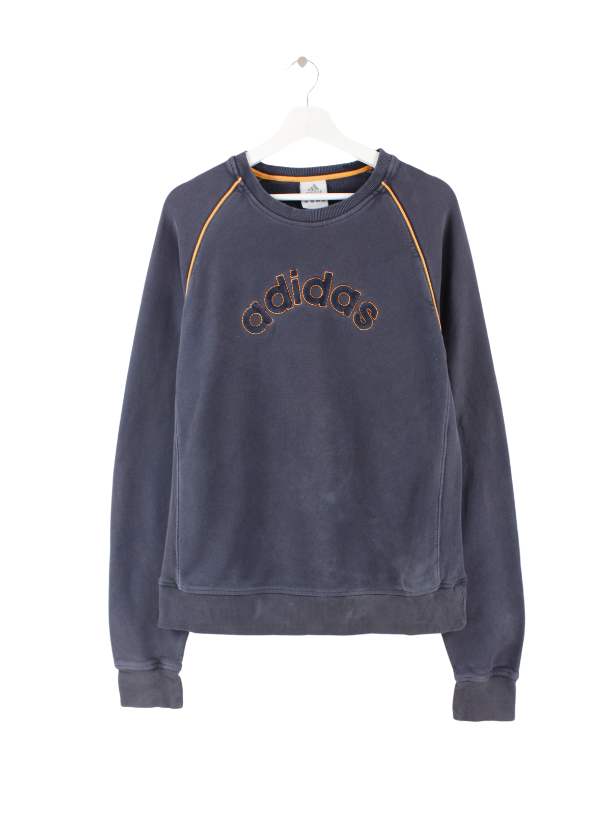 Blauer Vintage Adidas Sweater mit aufgesticktem Logo.