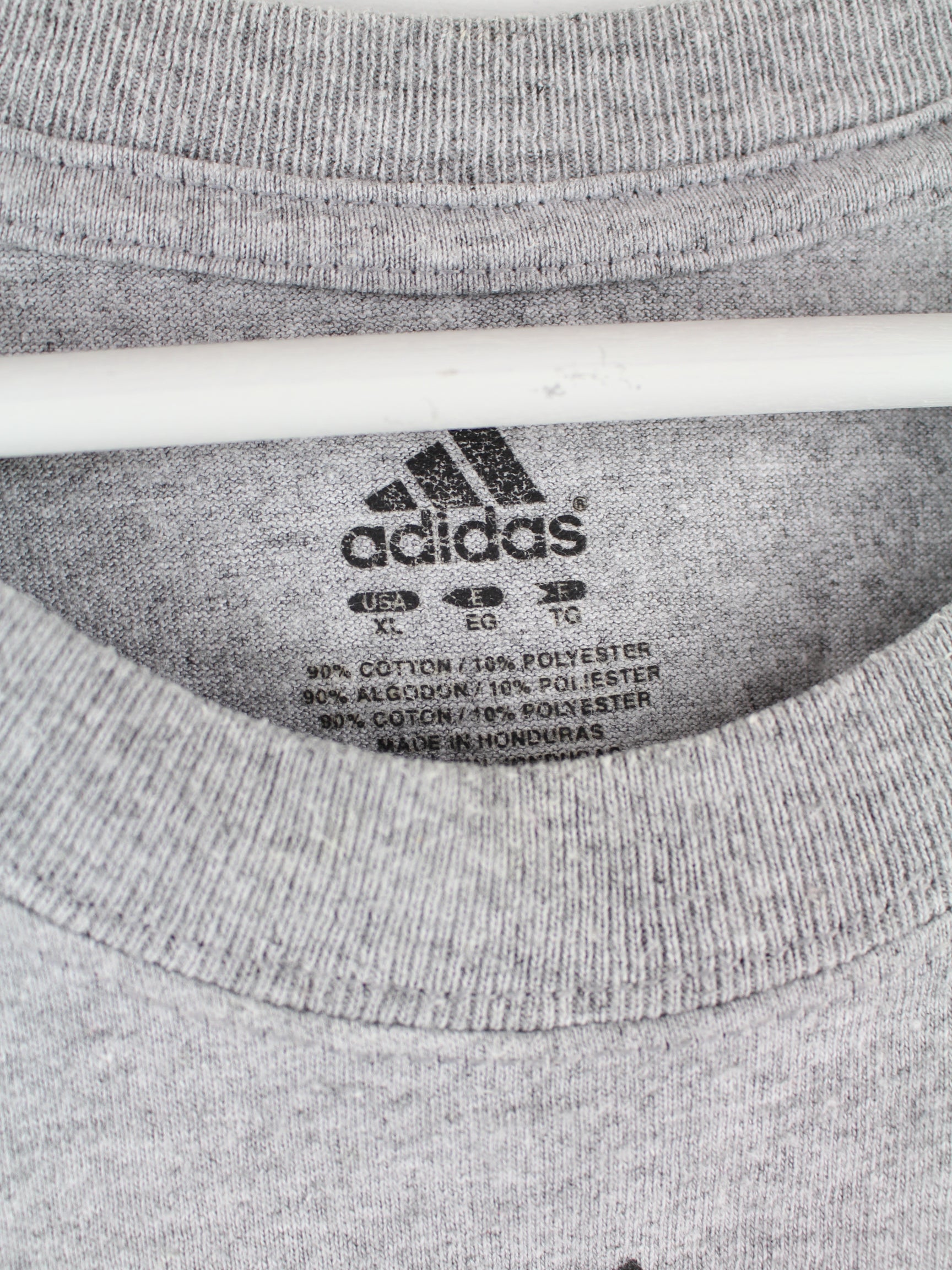 Graues T-Shirt der Brand Adidas in Größe XL. Es ist aus einer Baumwollmischung gefertigt und in sehr gutem Zustand im Angebot. Mit schickem Rockets Print.