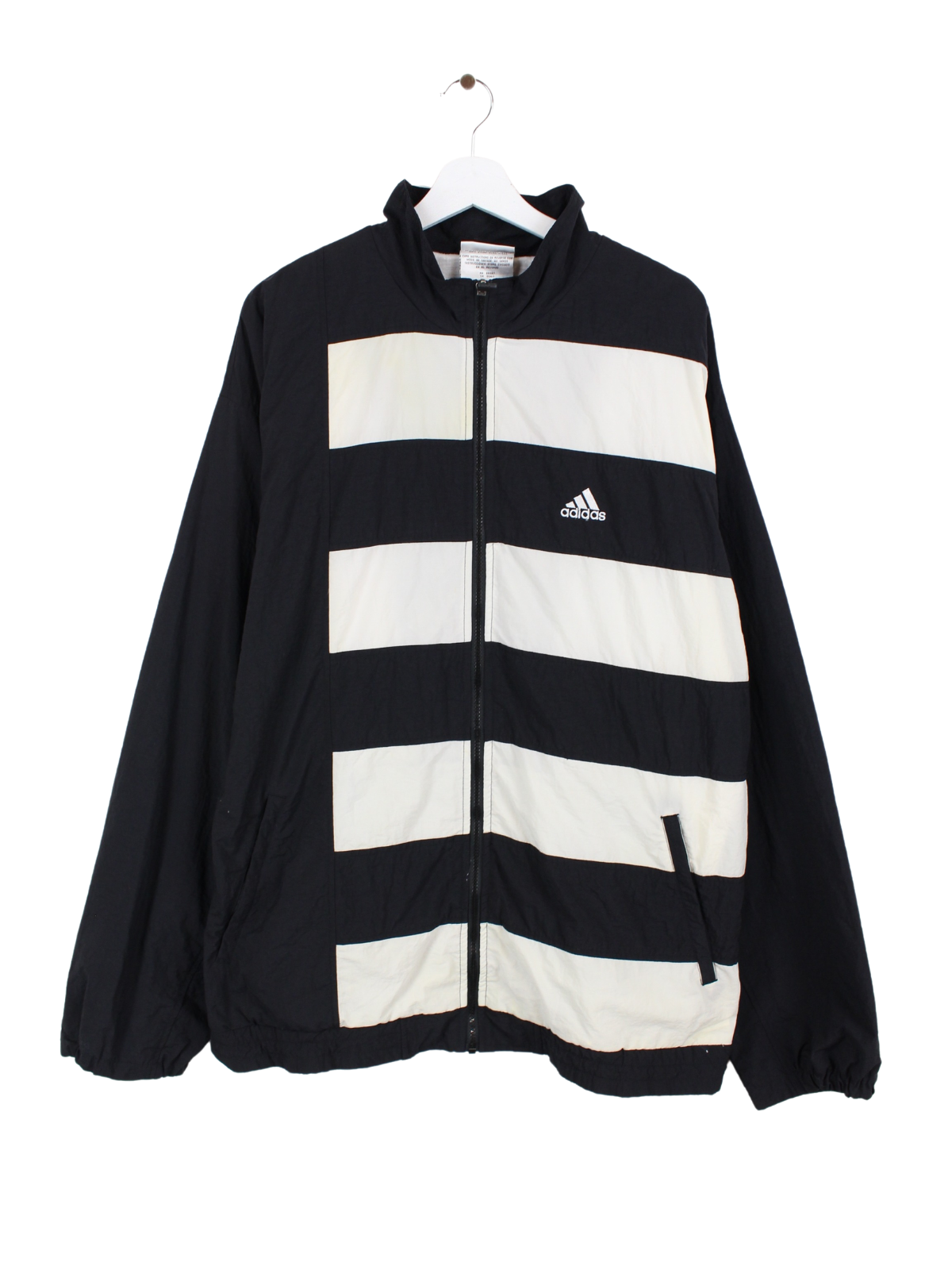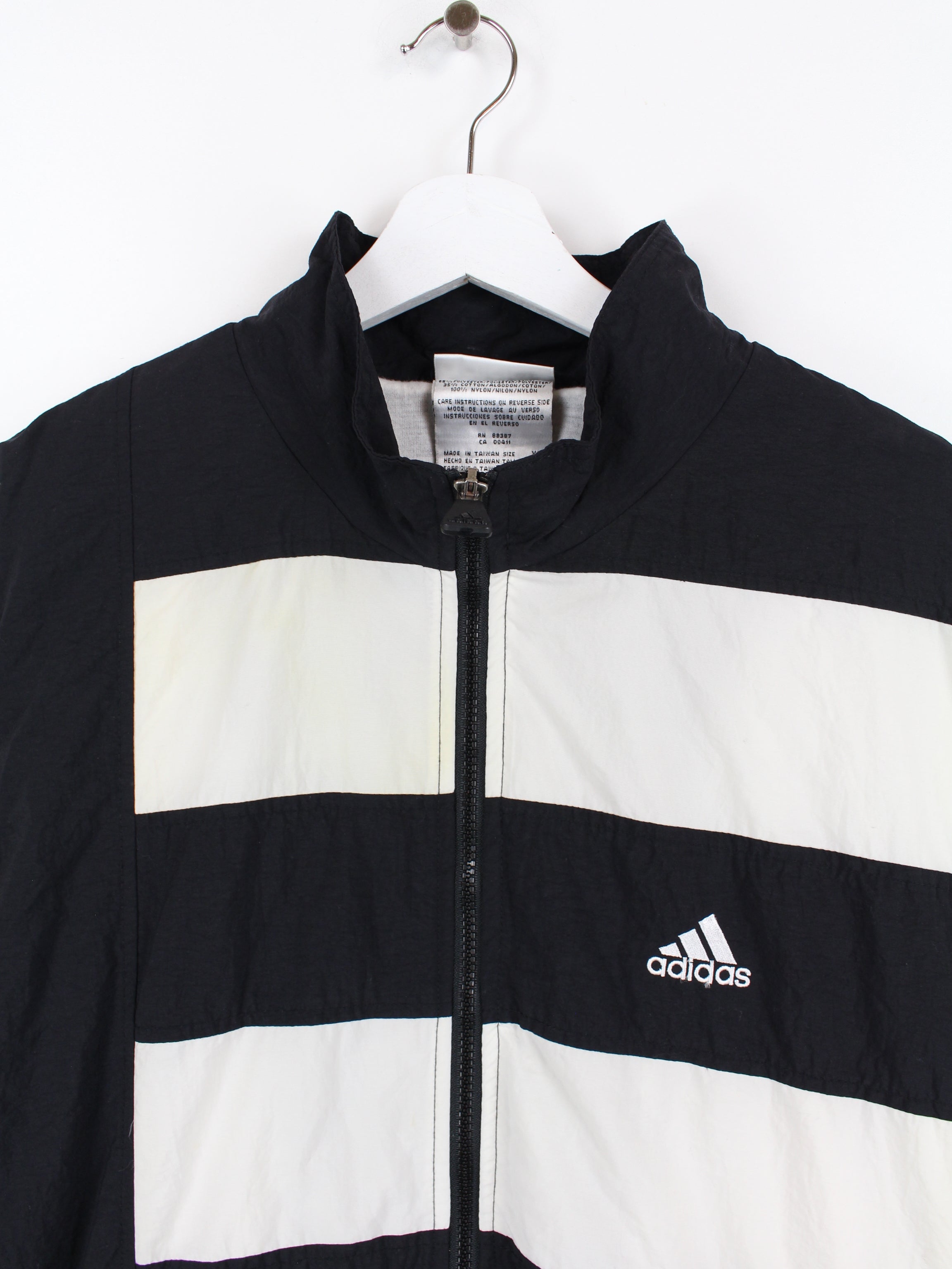Veste de survêtement Adidas vintage noire et blanche des années 90.