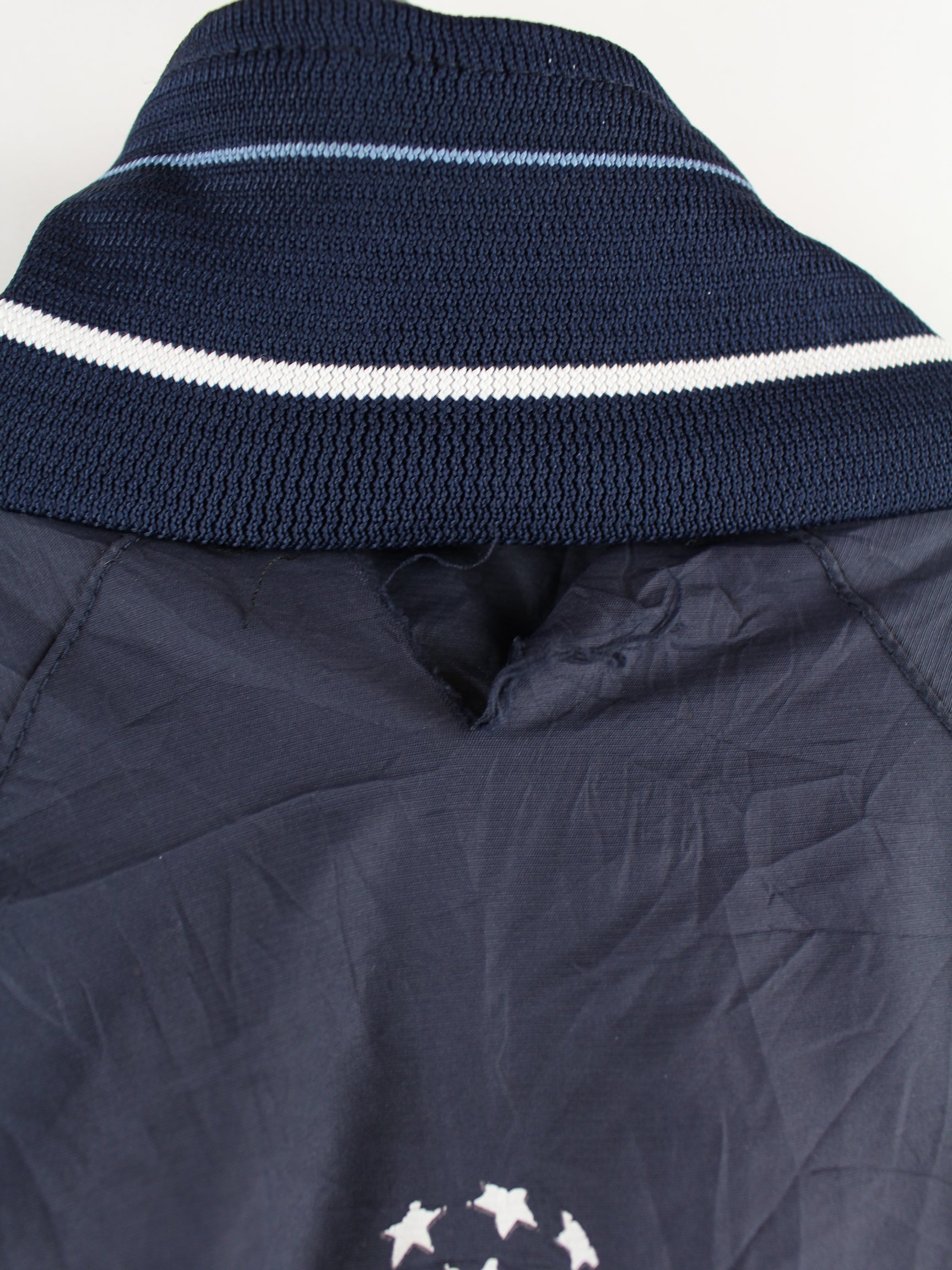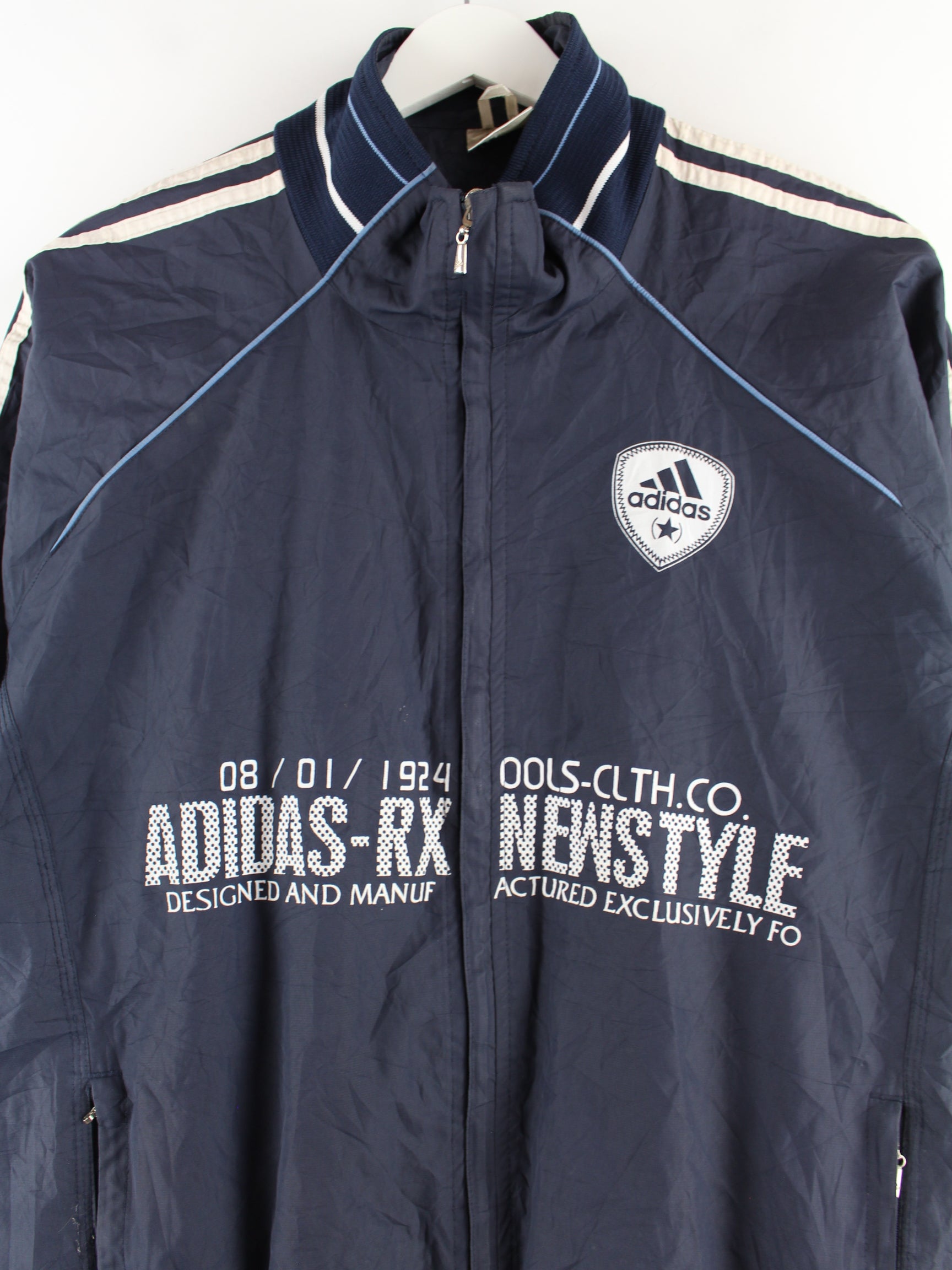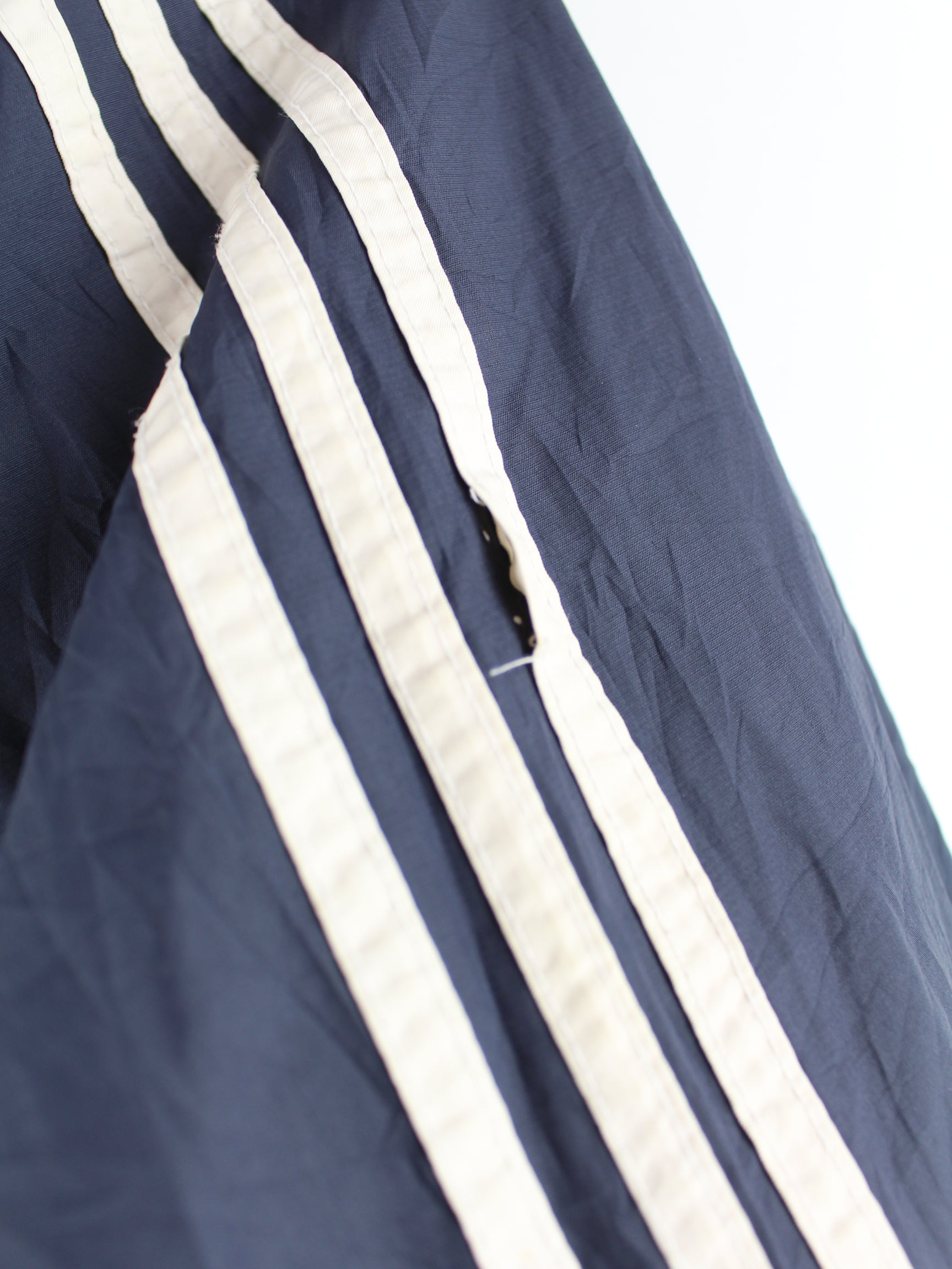Leichte Jacke vom Label Adidas in Größe M aus Anfang der 2000'er. Sie ist aus Synthetik hergestellt und in Blau bei uns zu bekommen.