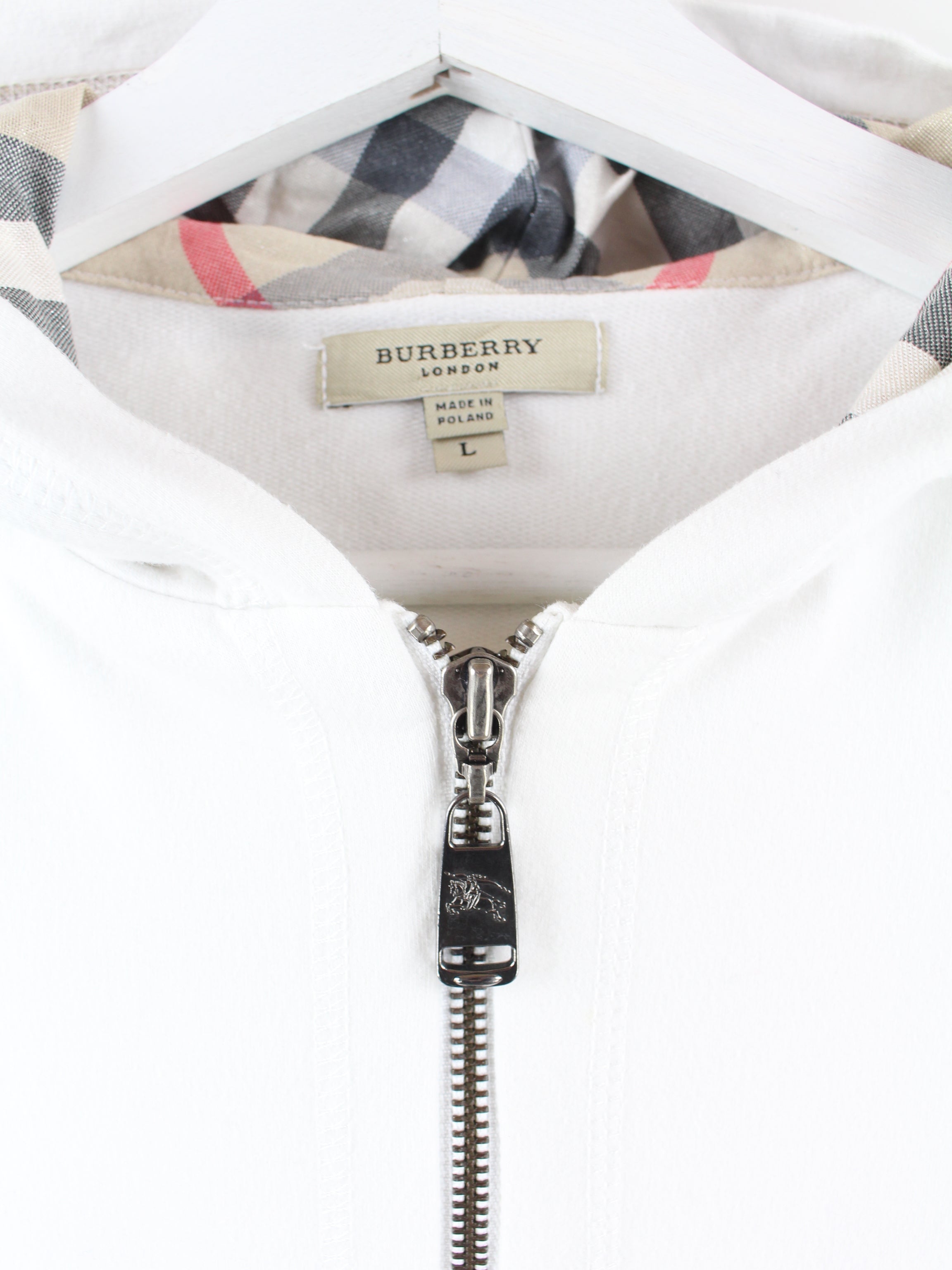 Sweat à capuche zippé blanc de la marque design Burberry.