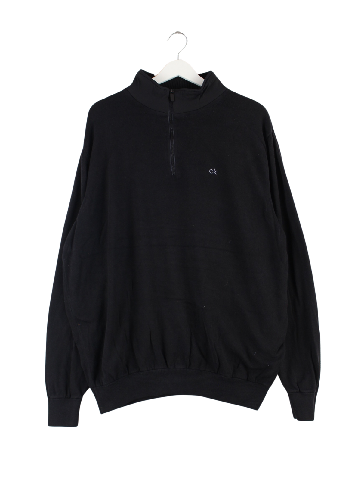 Sweater aus dem Hause Calvin Klein mit kurzem Reißverschluß in Größe XXL. Er ist aus einer Baumwollmischung hergestellt und in Schwarz zu haben.