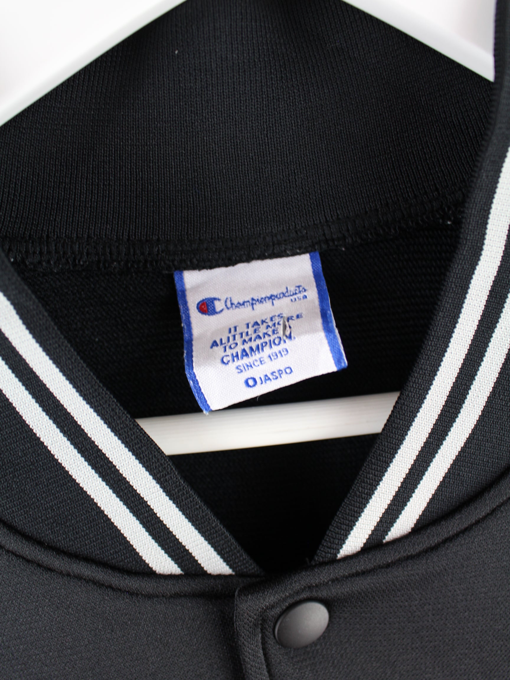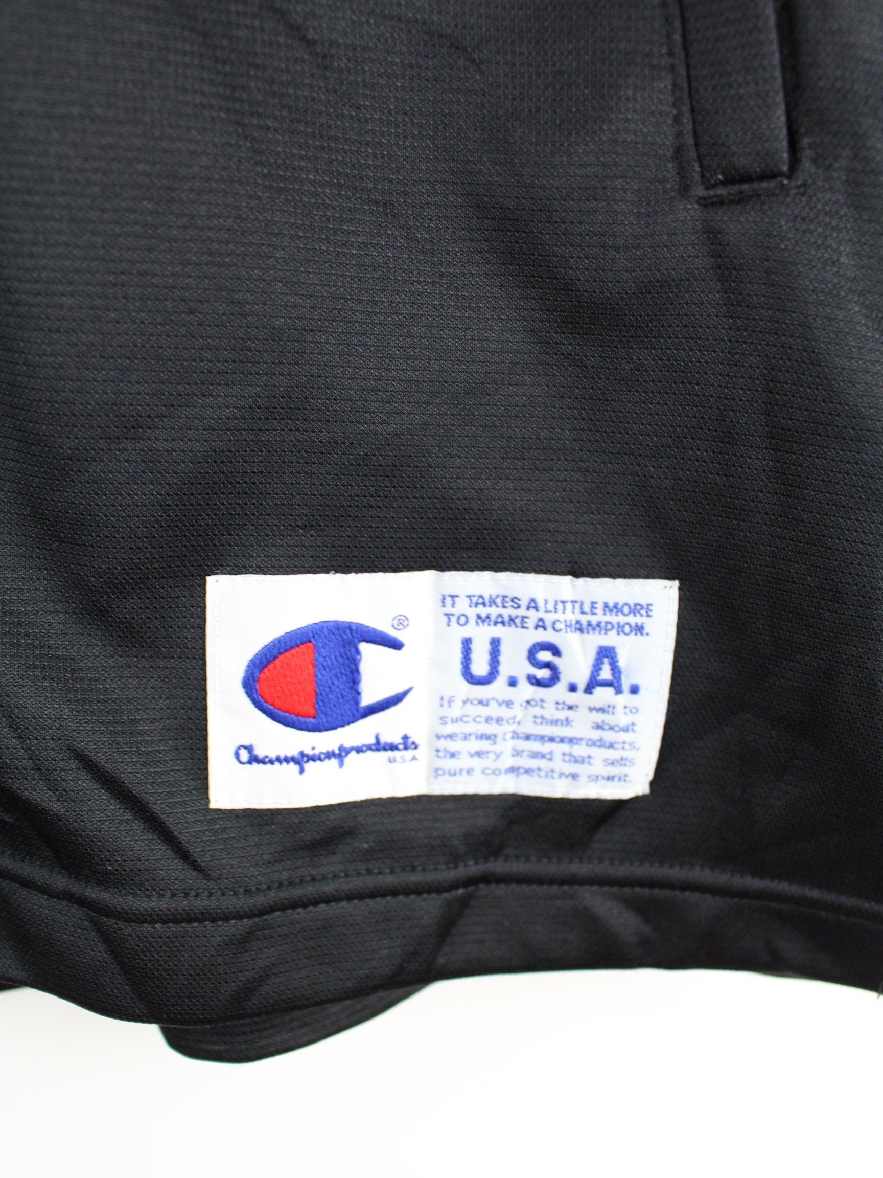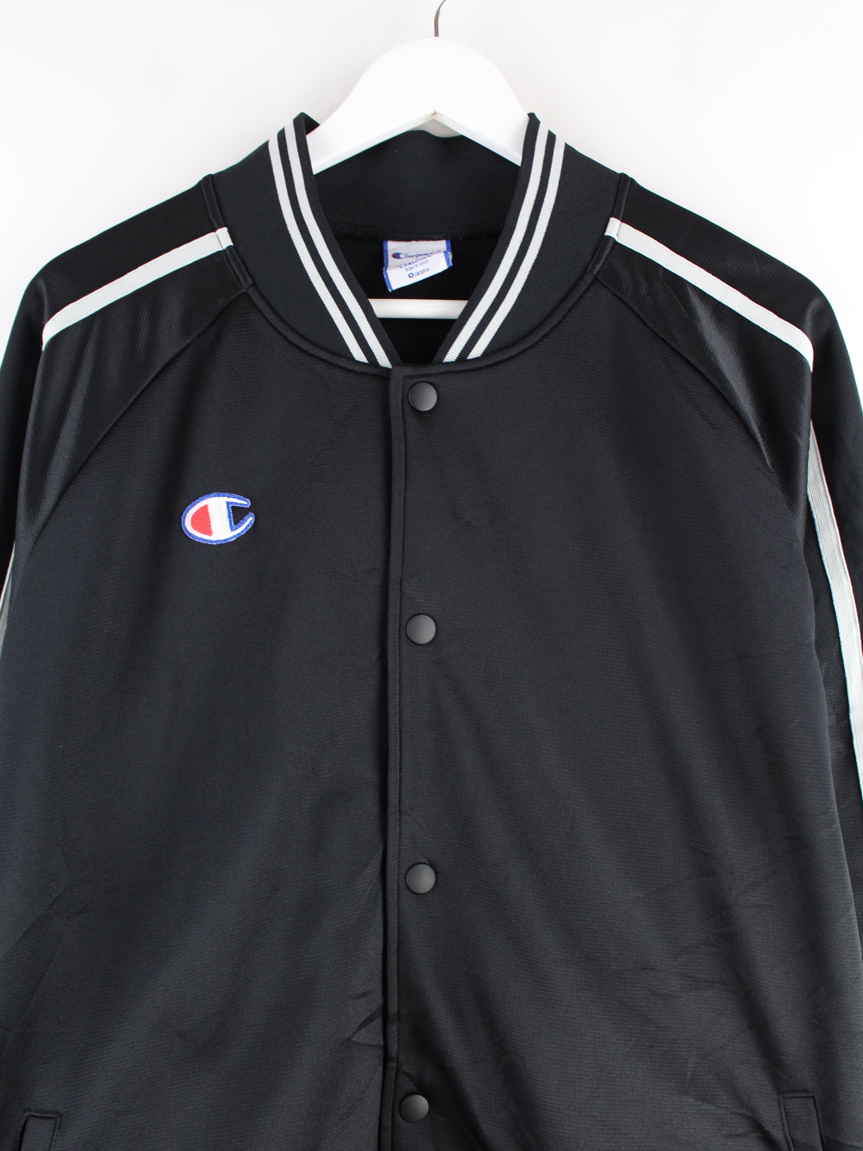 Schwarze Trainingsjacke vom Brand Champion aus den 90'ern in Größe XL. Sie ist aus Synthetik gefertigt und in sehr gutem Zustand auf Lager. Mit tollem 90s Print.