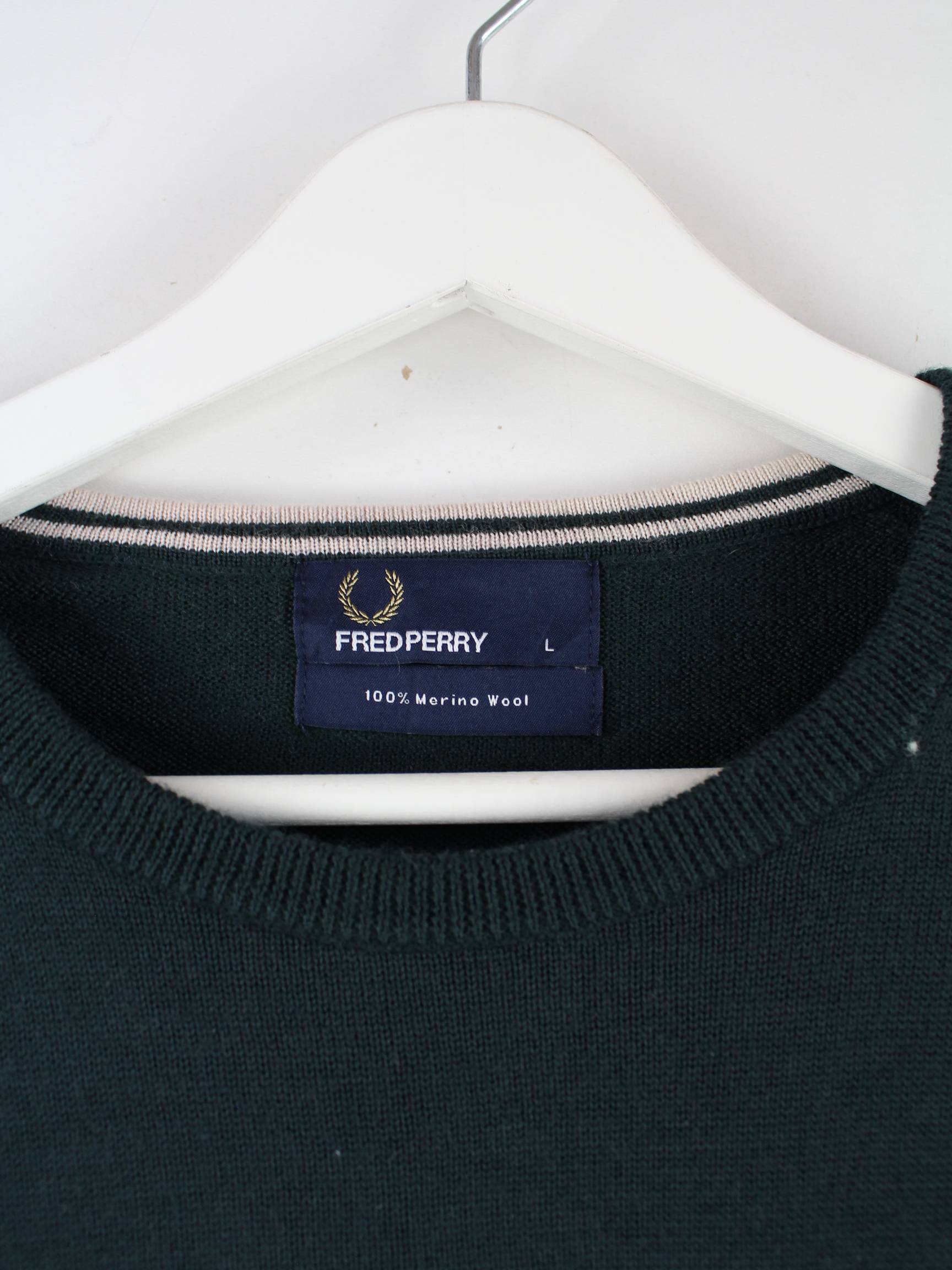 Fred Perry 00s 100% Merino Wolle Pullover Grün L