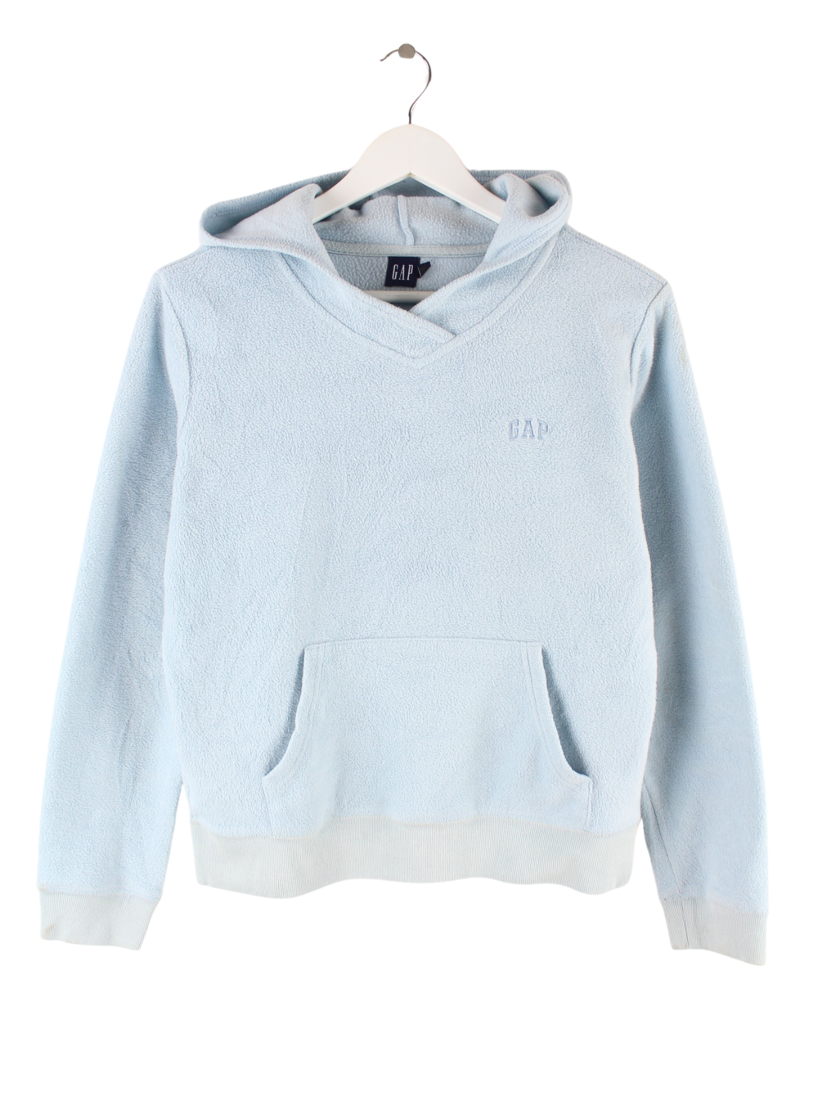 Blauer Hoodie der Marke GAP in Größe M. Er ist aus angenehmem Fleece hergestellt und in gutem Zustand bei uns zu bekommen.