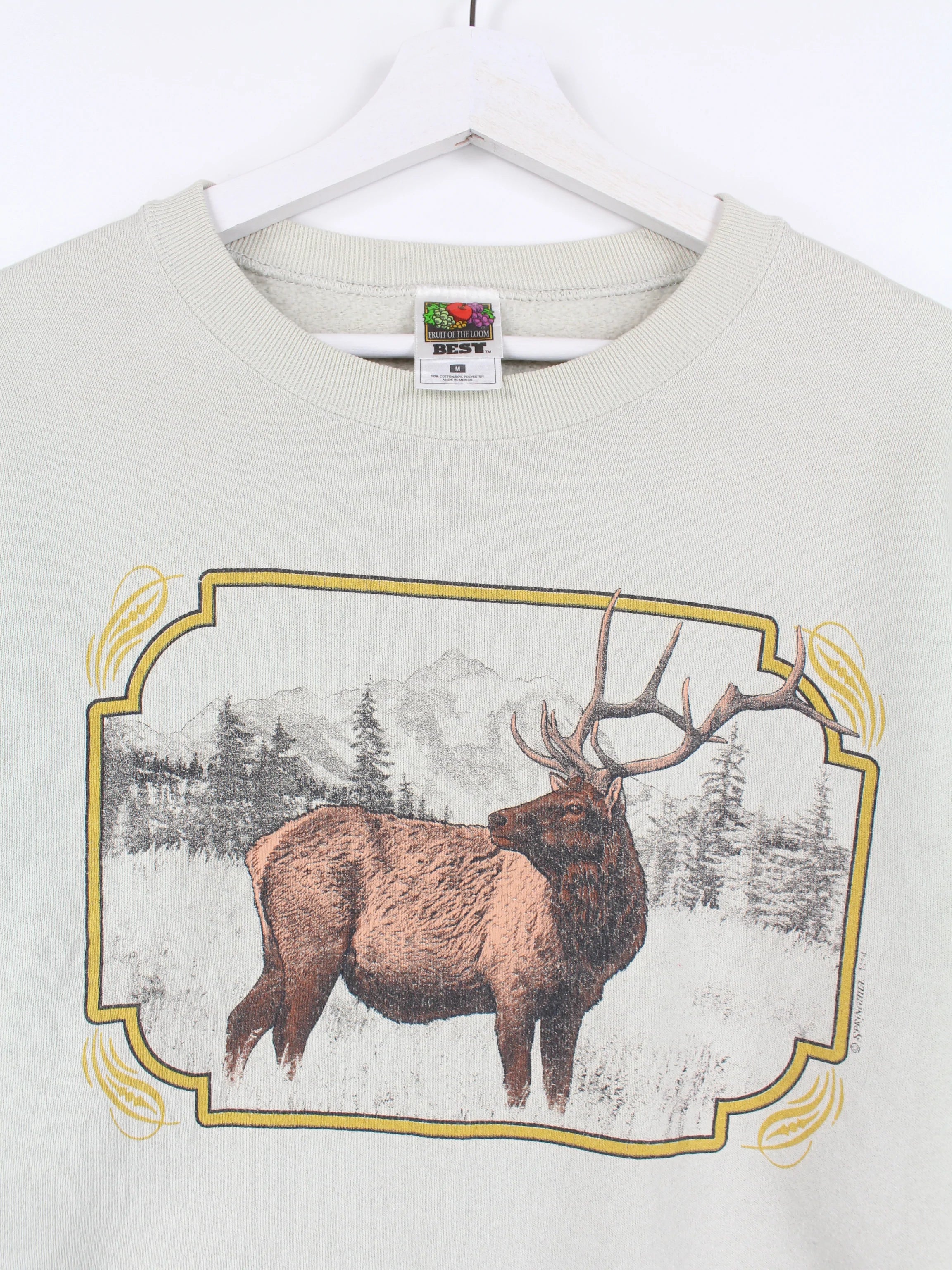 Pull vintage imprimé Gildan Hirsch des années 90.