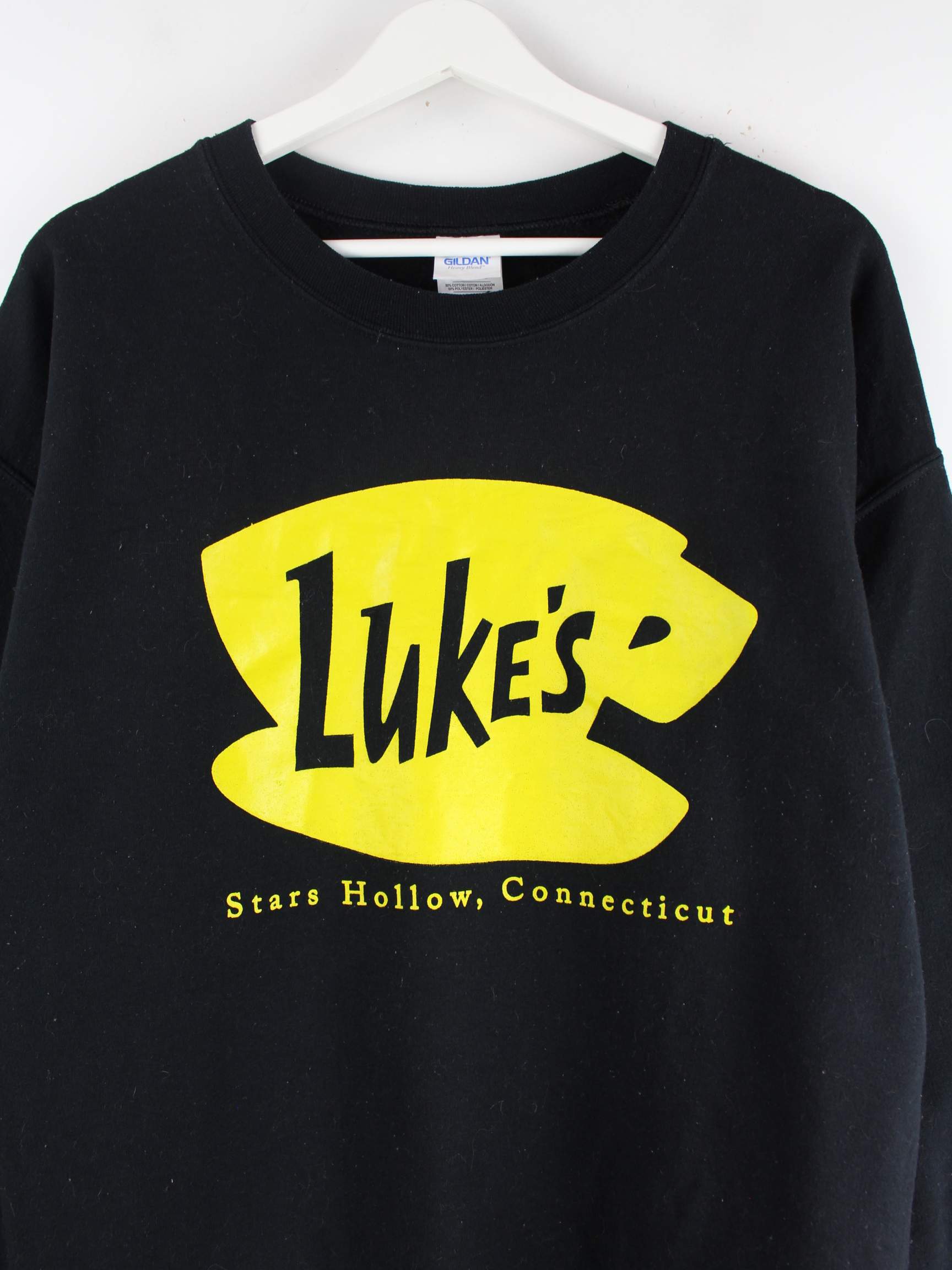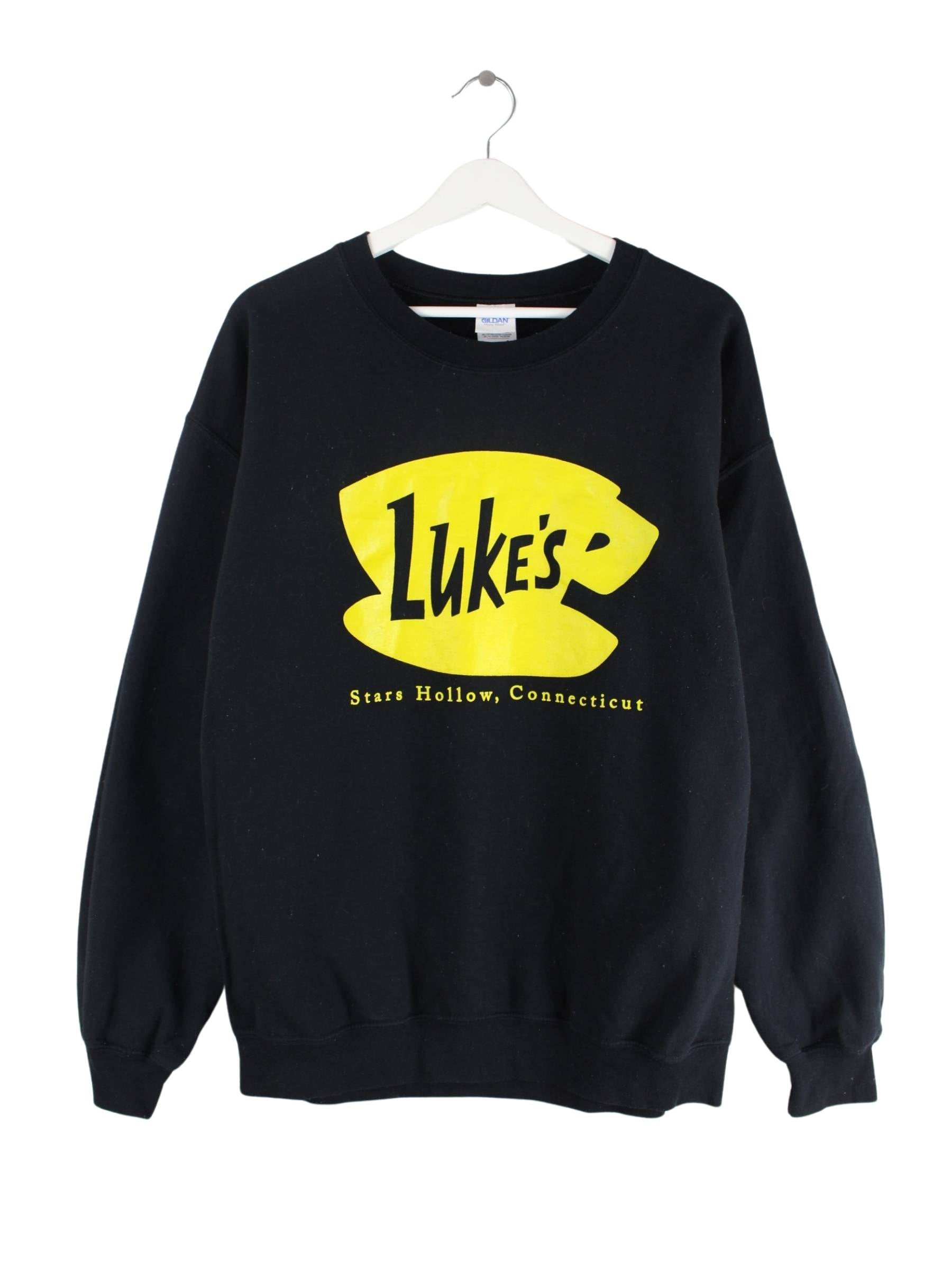 Sweater vom Brand Gildan in Größe L. Er ist aus einer Baumwollmischung hergestellt und in Schwarz bei uns vorrätig. Mit schickem Lukes Print.
