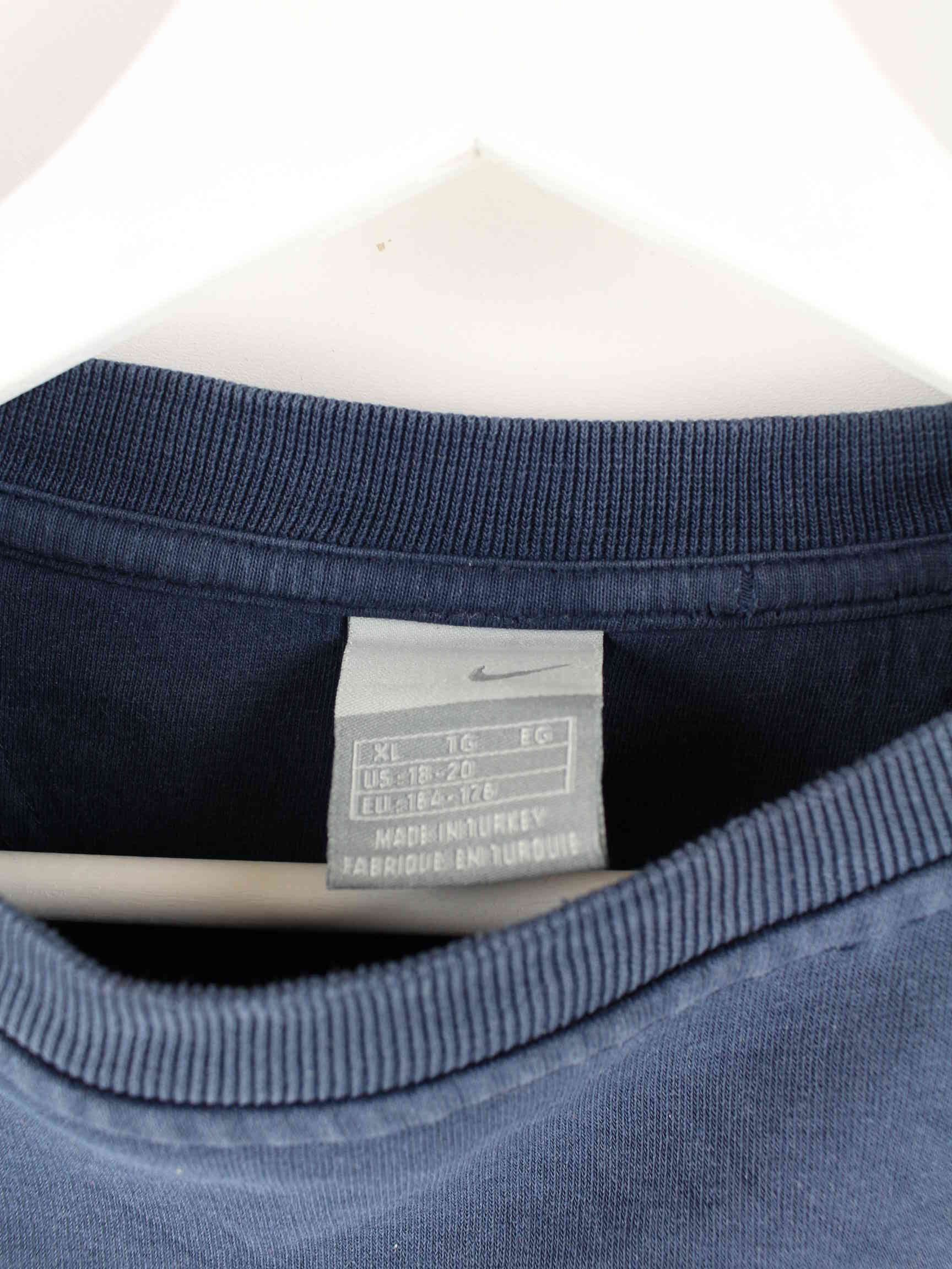 Sweater der Brand Nike in Größe XL aus Anfang der 2000'er. Er ist aus einer Baumwollmischung angefertigt und in Blau lieferbar.