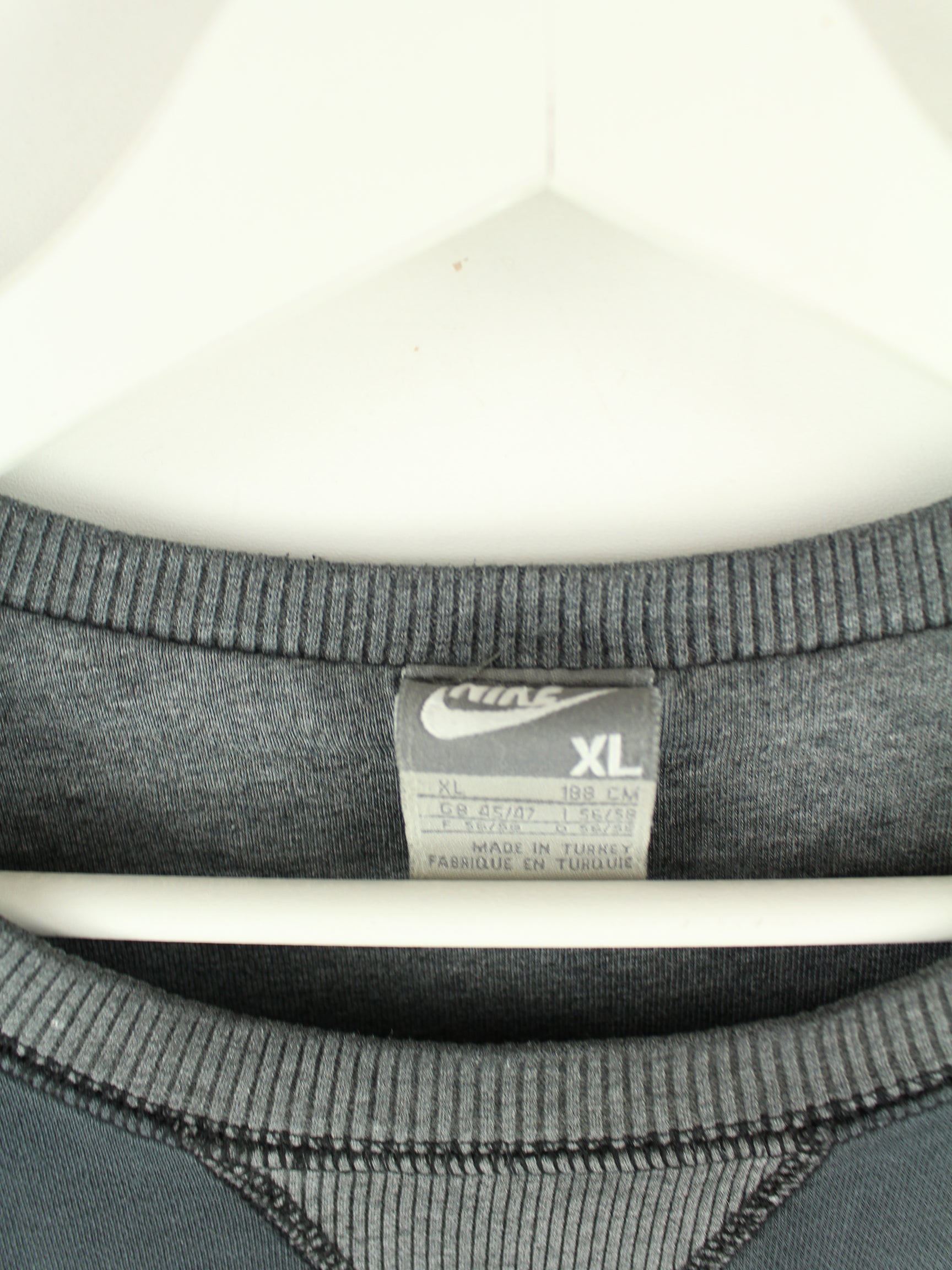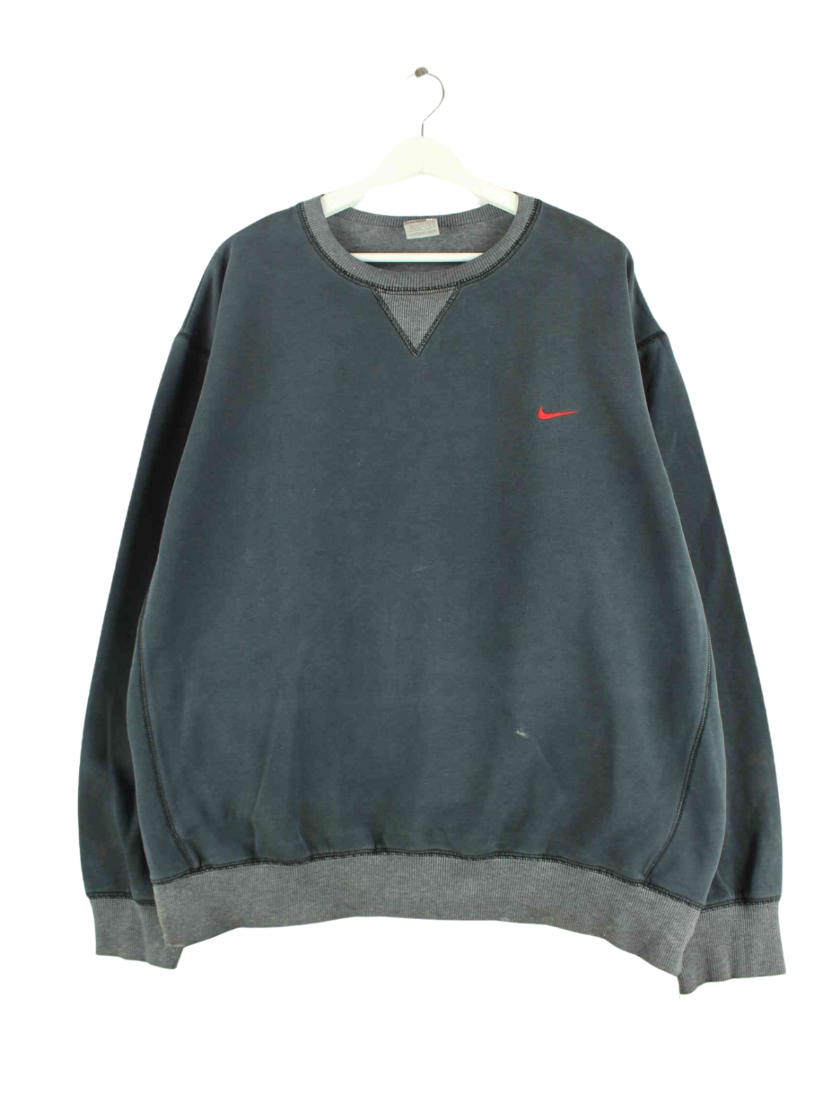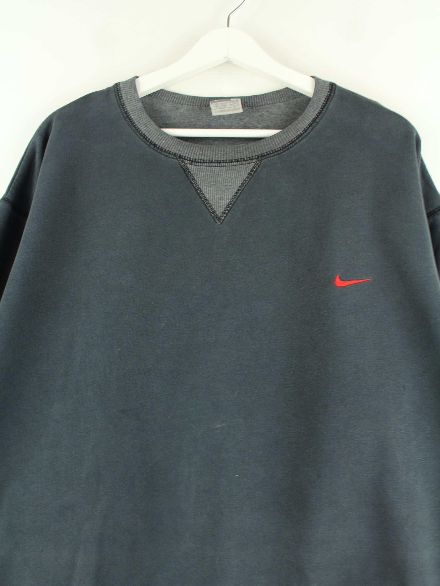 Sweater der Marke Nike in Größe XL aus Anfang der 2000'er. Er ist aus einer Baumwollmischung gemacht und in Grau vorrätig.