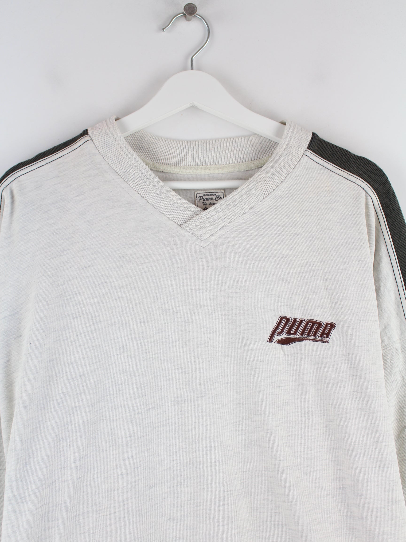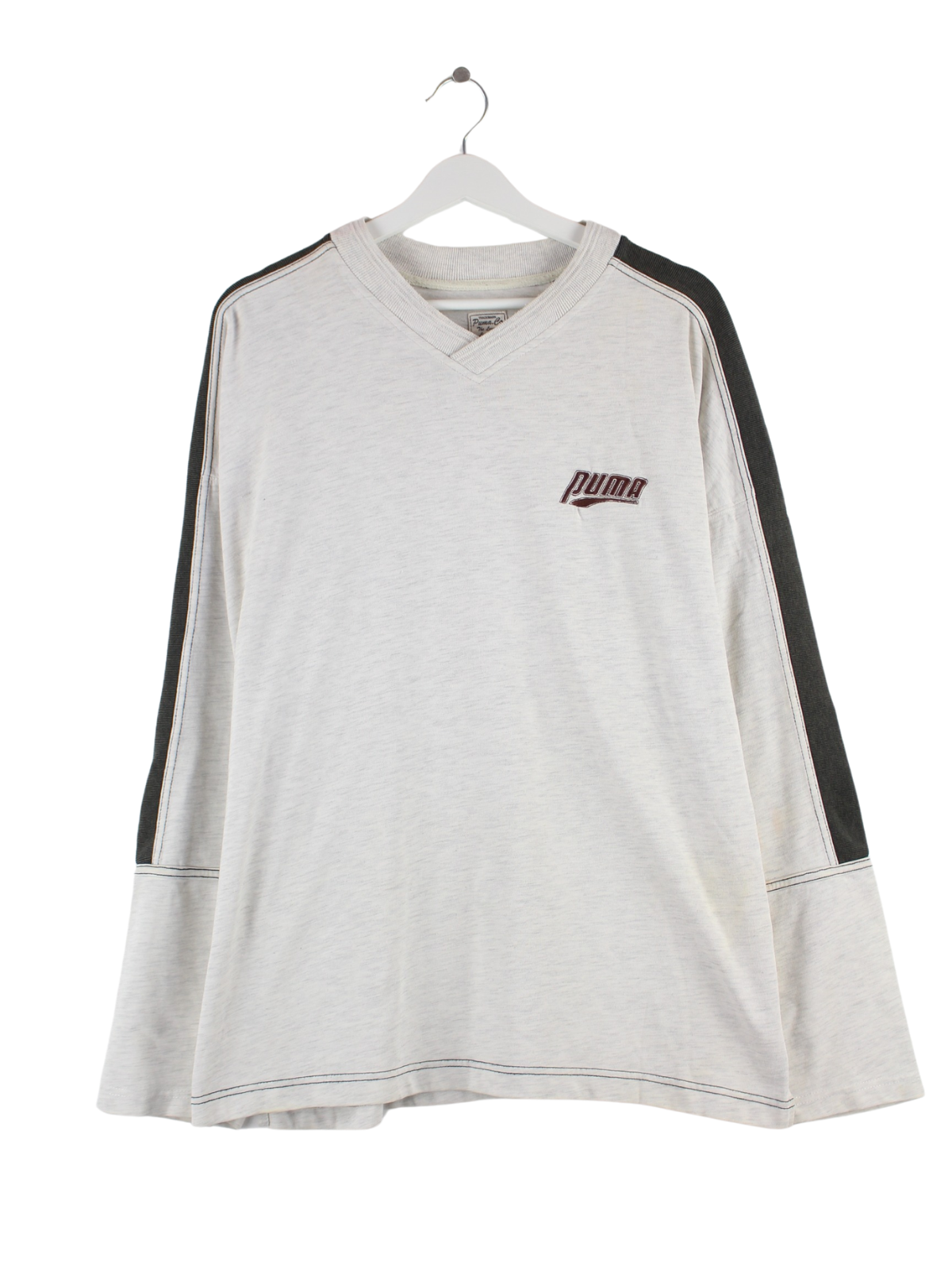 Sweater des Labels Puma mit gesticktem Logo in Größe L. Er ist aus einer Baumwollmischung produziert und in Grau lieferbar.