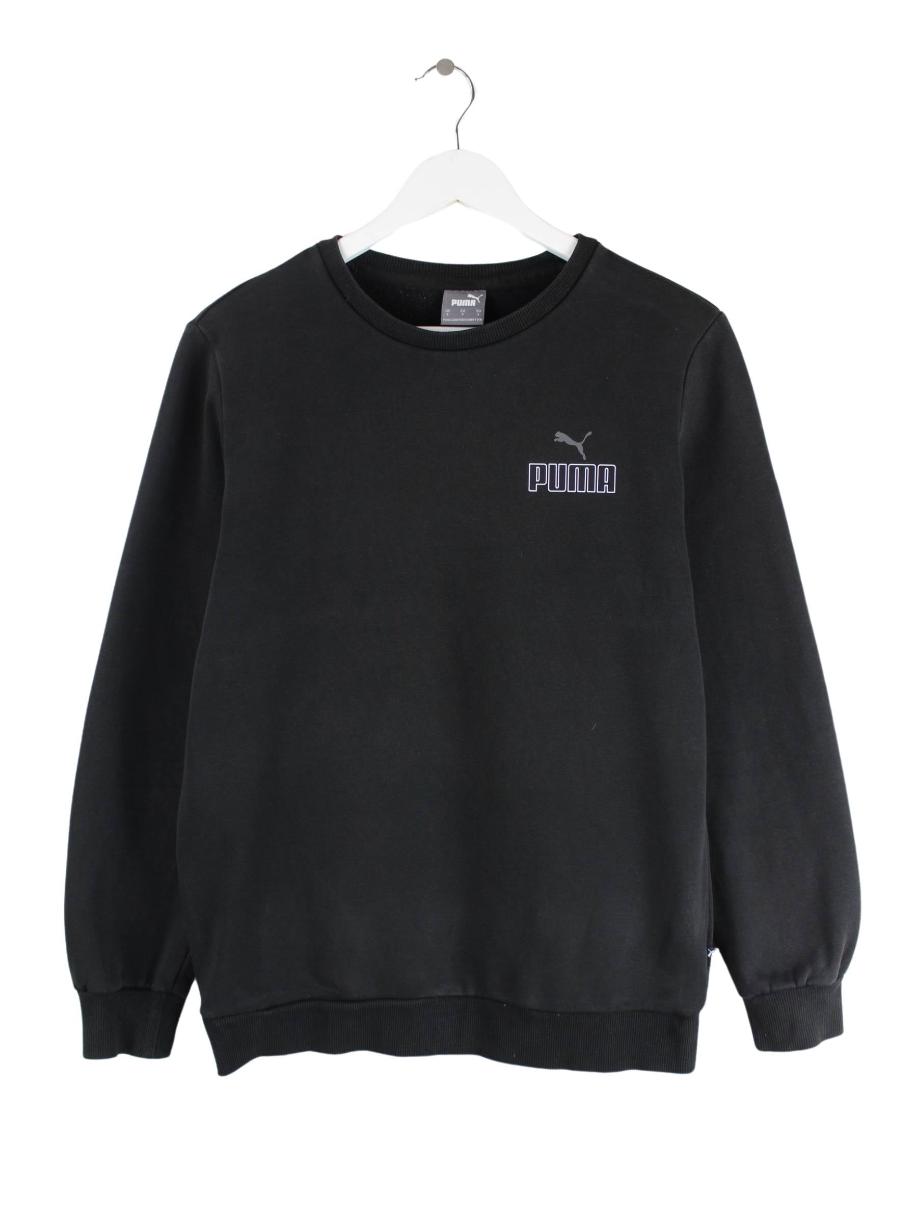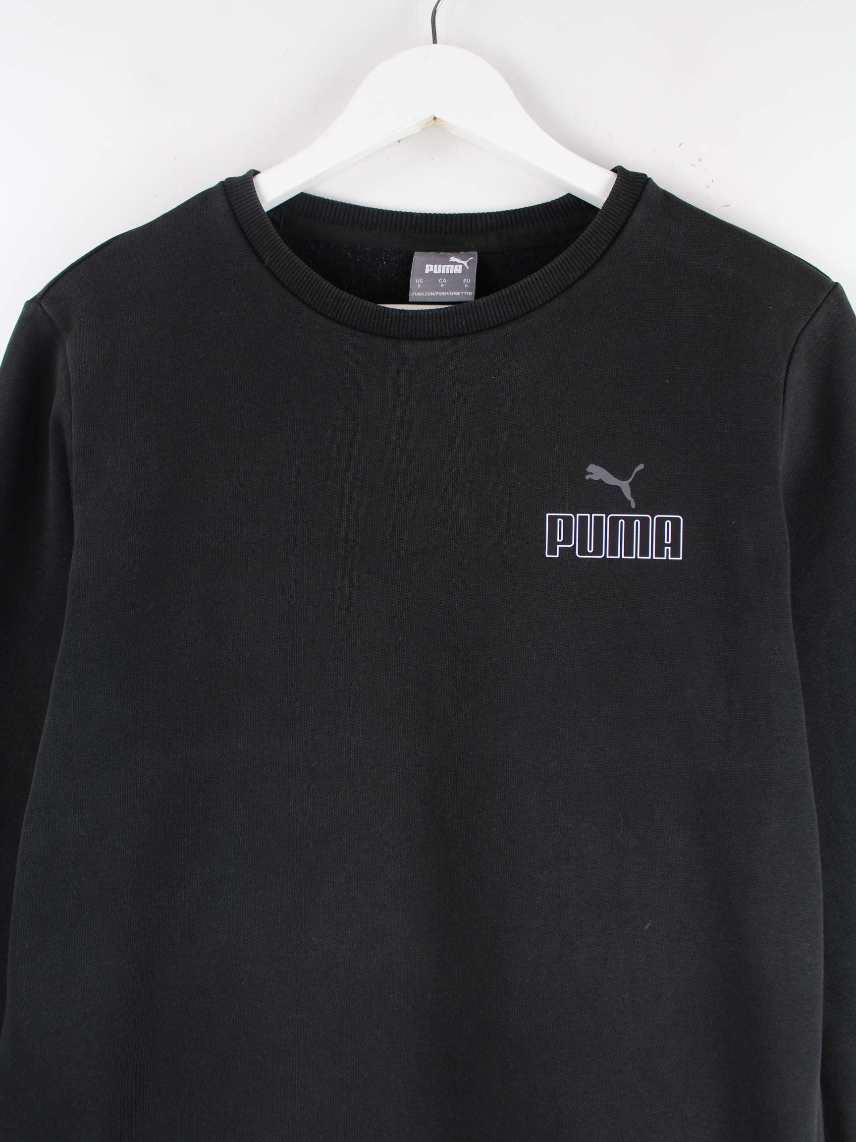 Schwarzer Sweater der Brand Puma in Größe S. Er ist aus einer Baumwollmischung produziert und in sehr gutem Zustand auf Lager. Mit schönem Print.