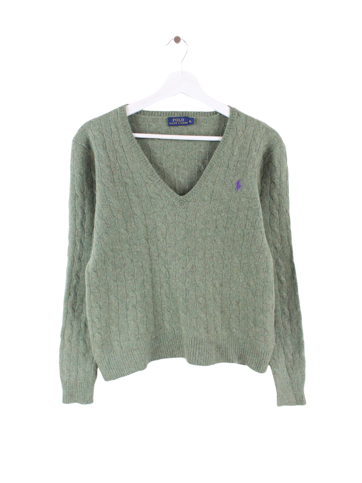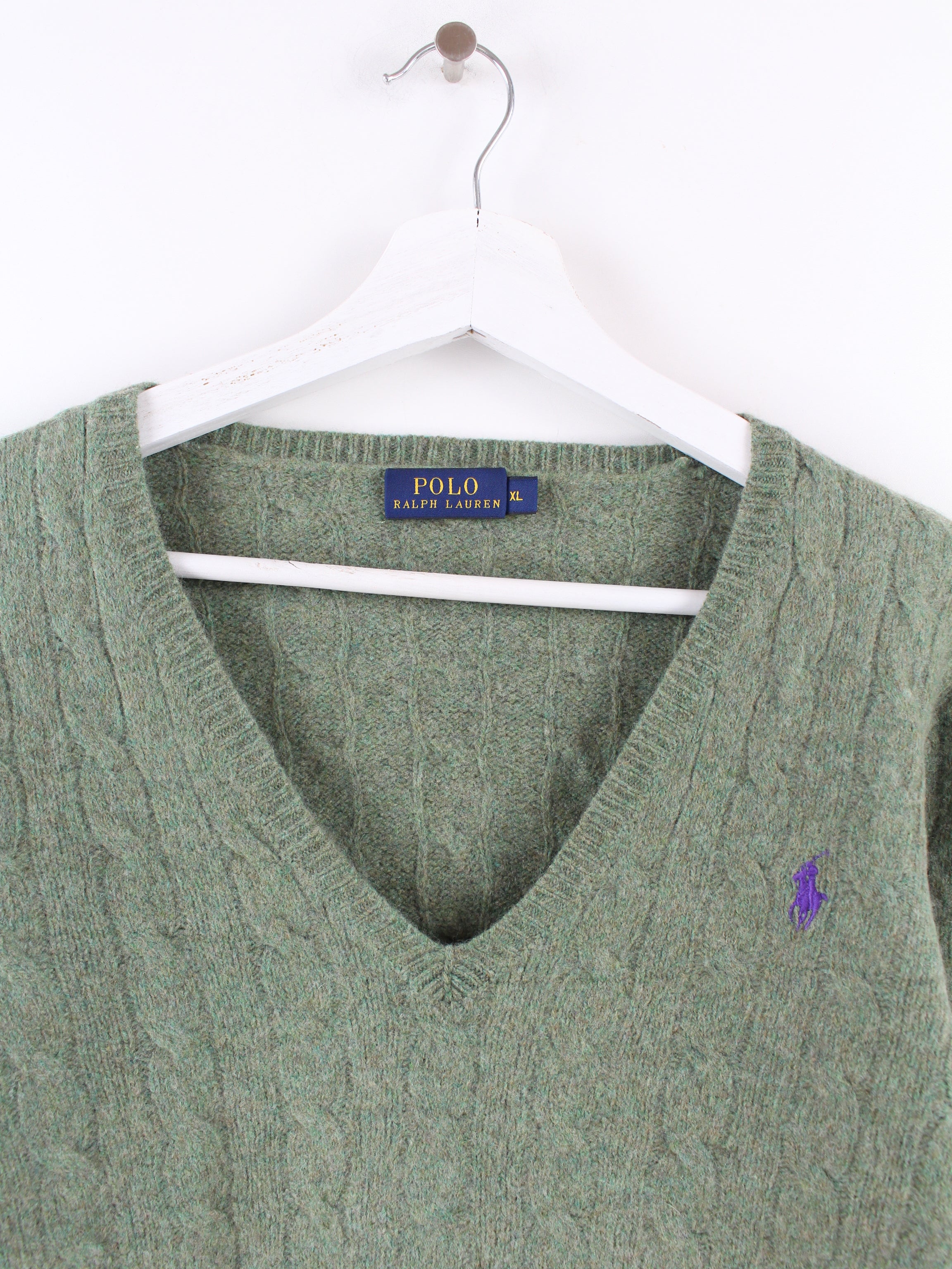 Ralph Lauren Mesdames Pull en laine à col en V Vert XL