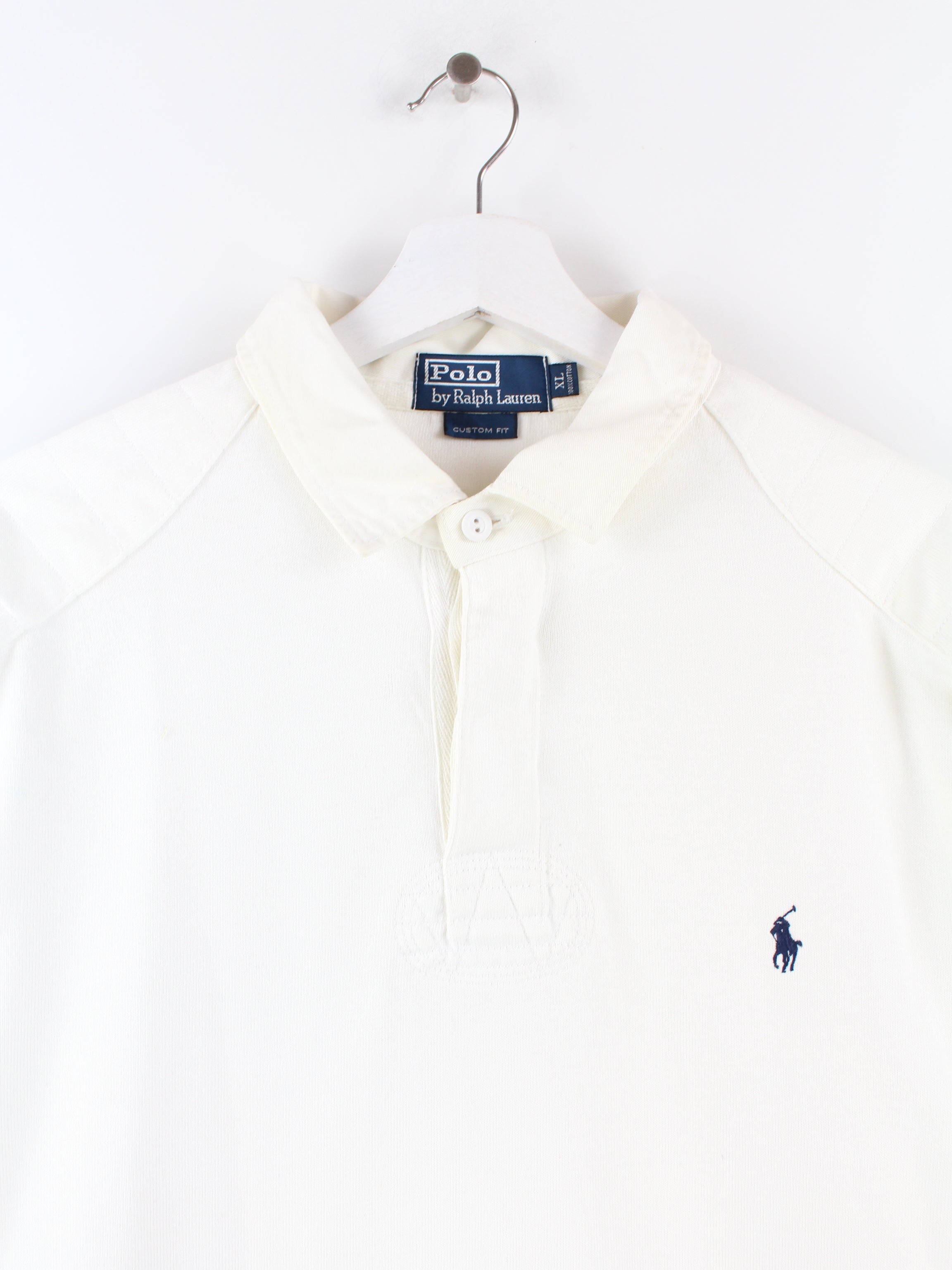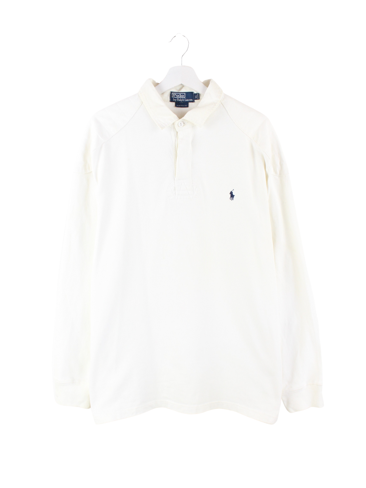 Weißes Langarm-Poloshirt der Marke Ralph Lauren.