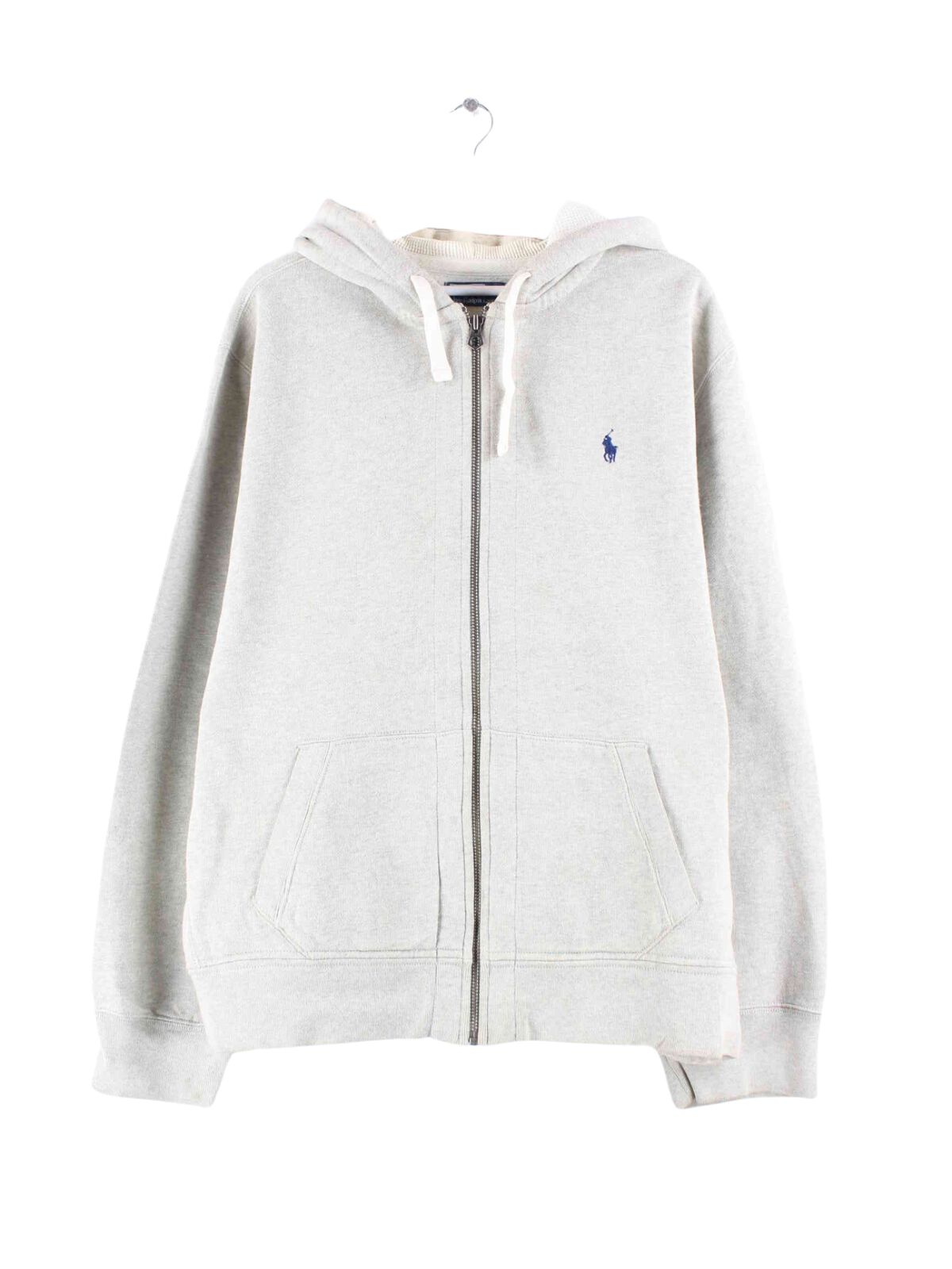 Hoodie vom Label Ralph Lauren mit Zip in Größe XXL. Er ist aus einer Baumwollmischung gemacht und in Grau zu bekommen.