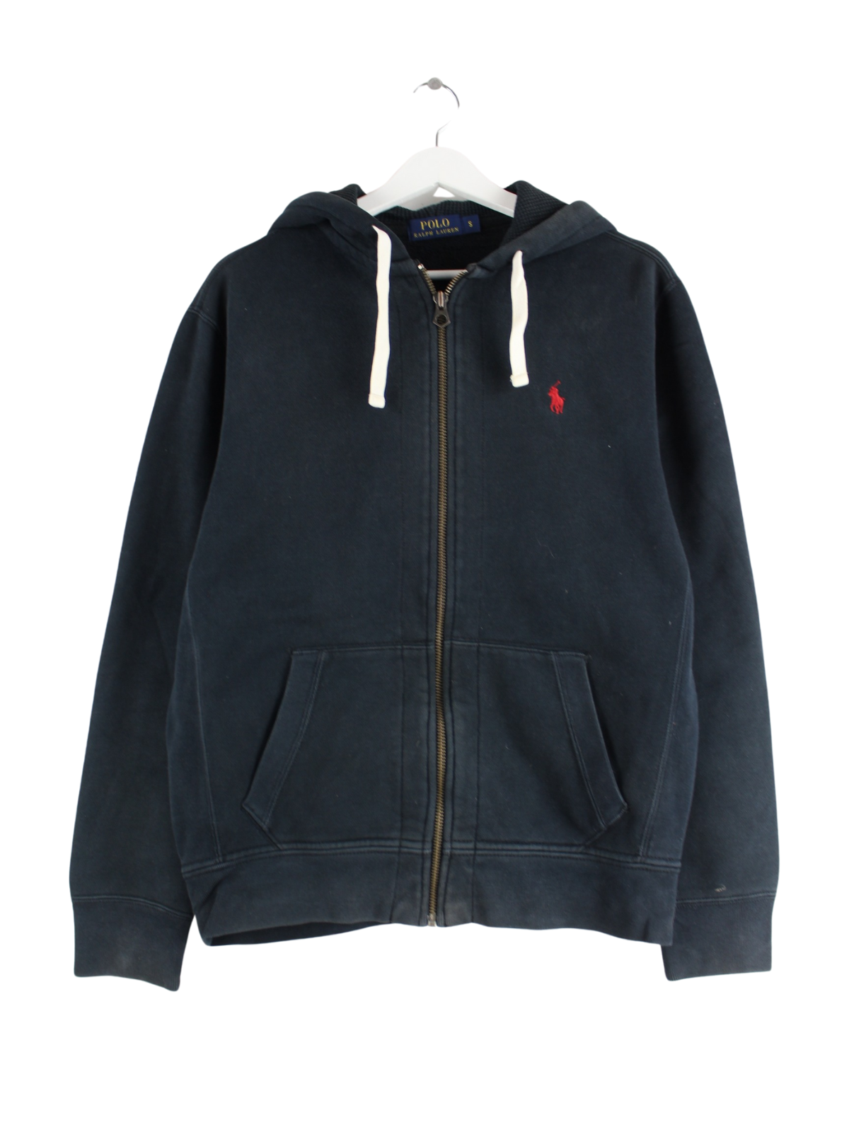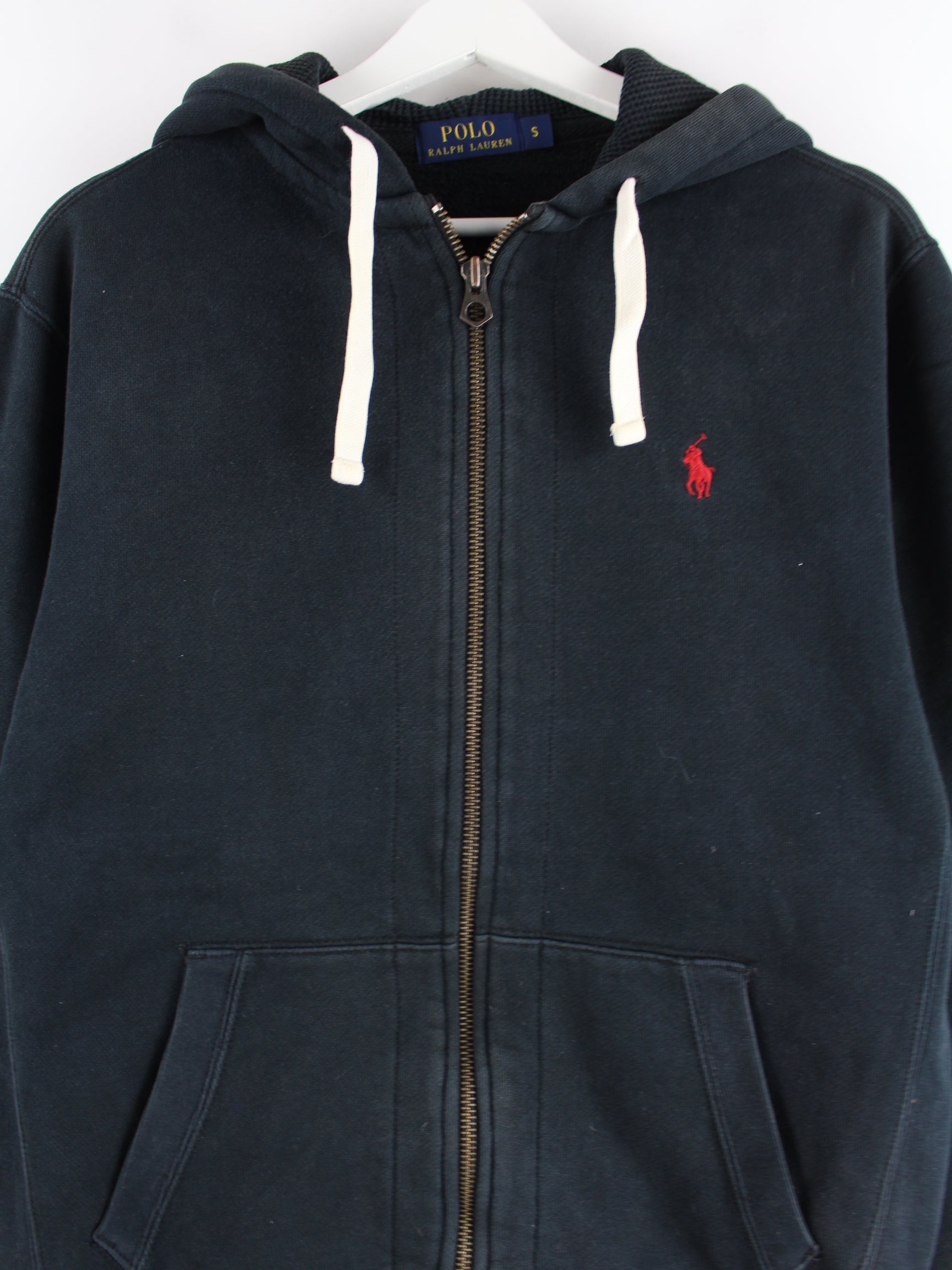 Schwarzer Hoodie mit langem Reißverschluß vom Label Ralph Lauren in Größe S. Er ist aus einer Baumwollmischung gefertigt und in gutem Zustand lieferbar.