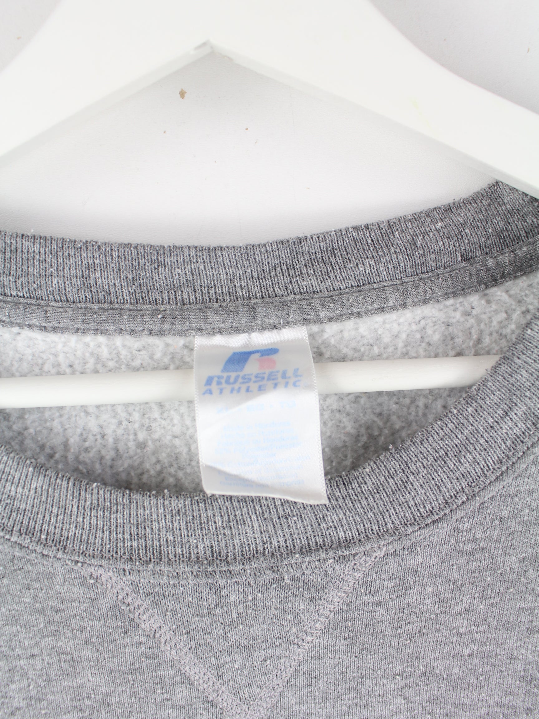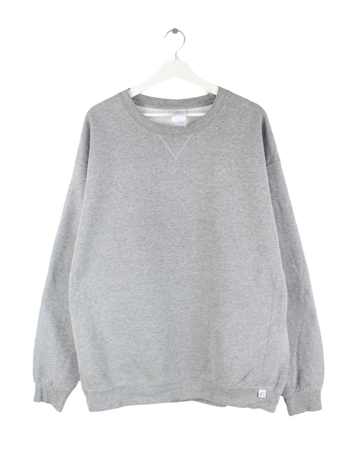 Grauer Sweater der Marke Russell Athletic in Größe XL. Er ist aus einer Baumwollmischung gemacht und in sehr gutem Zustand auf Lager.