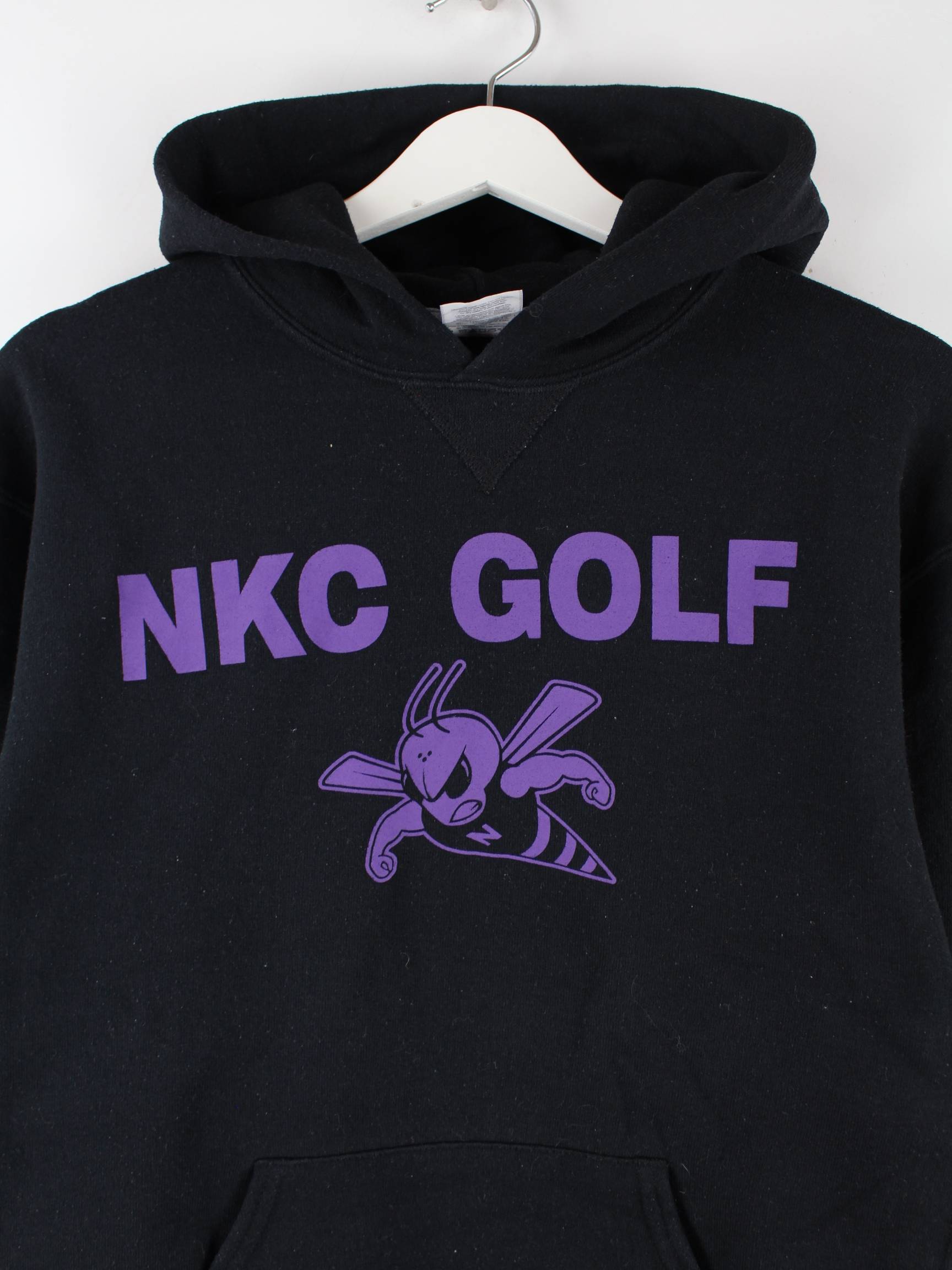 Hoodie des Labels Russell Athletic in Größe S. Er ist aus einer Baumwollmischung gefertigt und in Schwarz lieferbar. Mit schönem Golf Print.