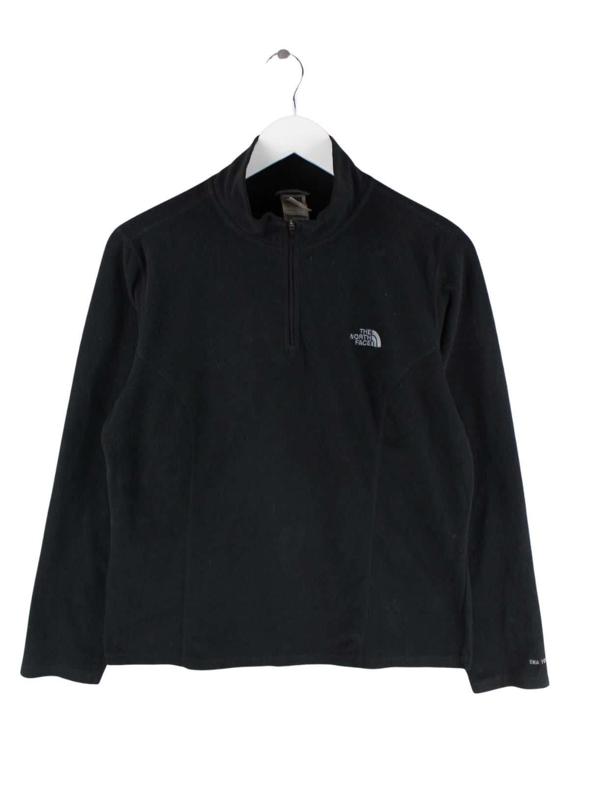 Schwarzer Sweater mit half Zip der Marke The North Face in Größe L. Er ist aus angenehmem Fleece angefertigt und in sehr gutem Zustand lieferbar.