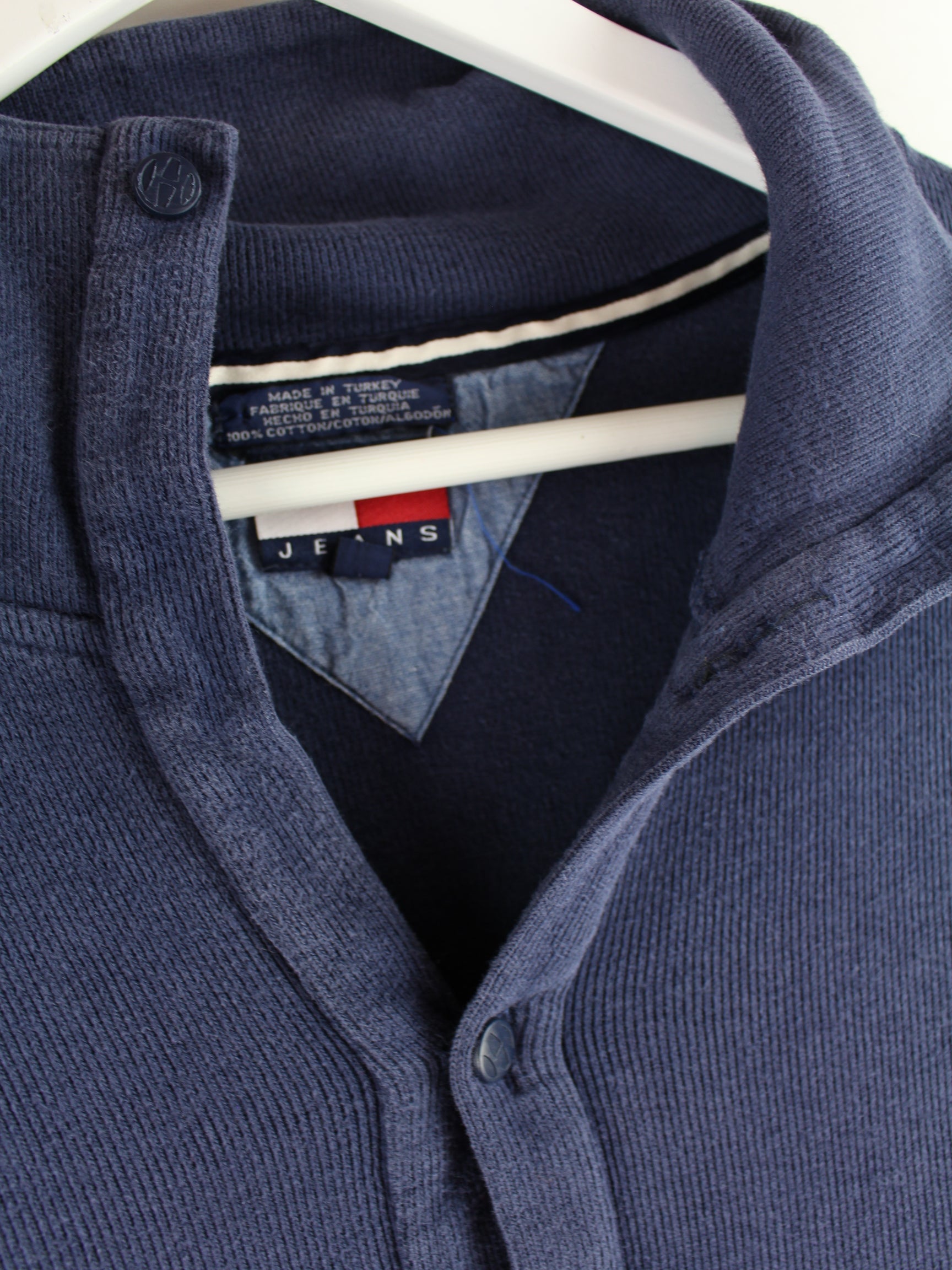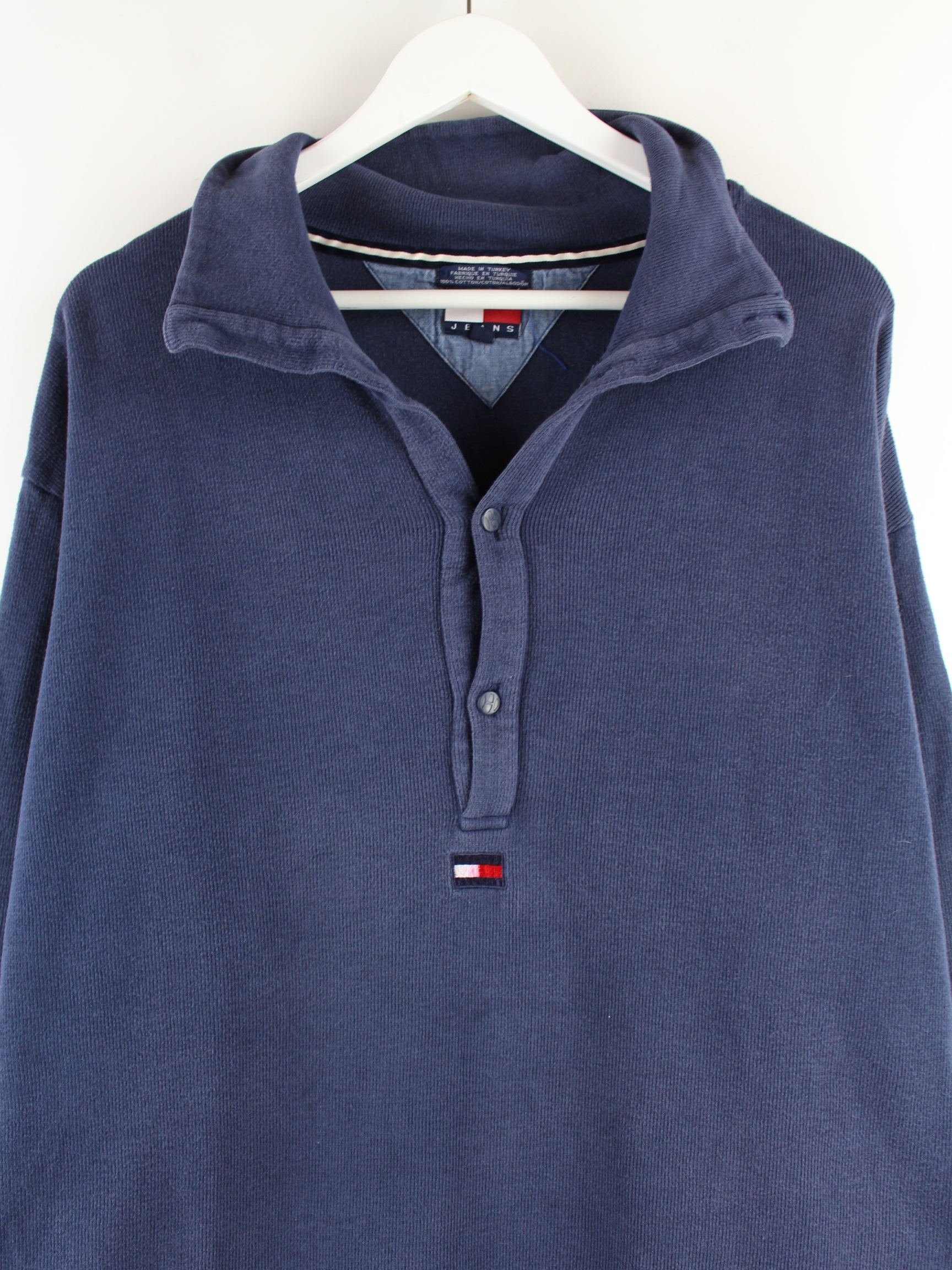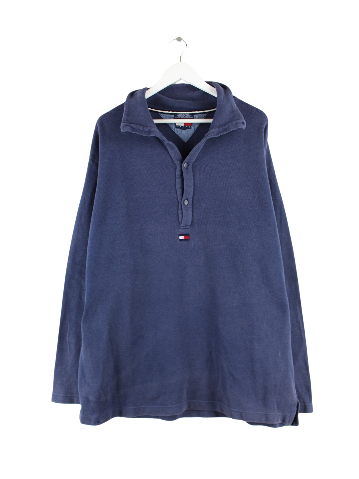 Pullover vom Label Tommy Hilfiger in Größe XL aus Anfang der 2000'er. Er ist aus einer Baumwollmischung gemacht und in Blau zu haben.