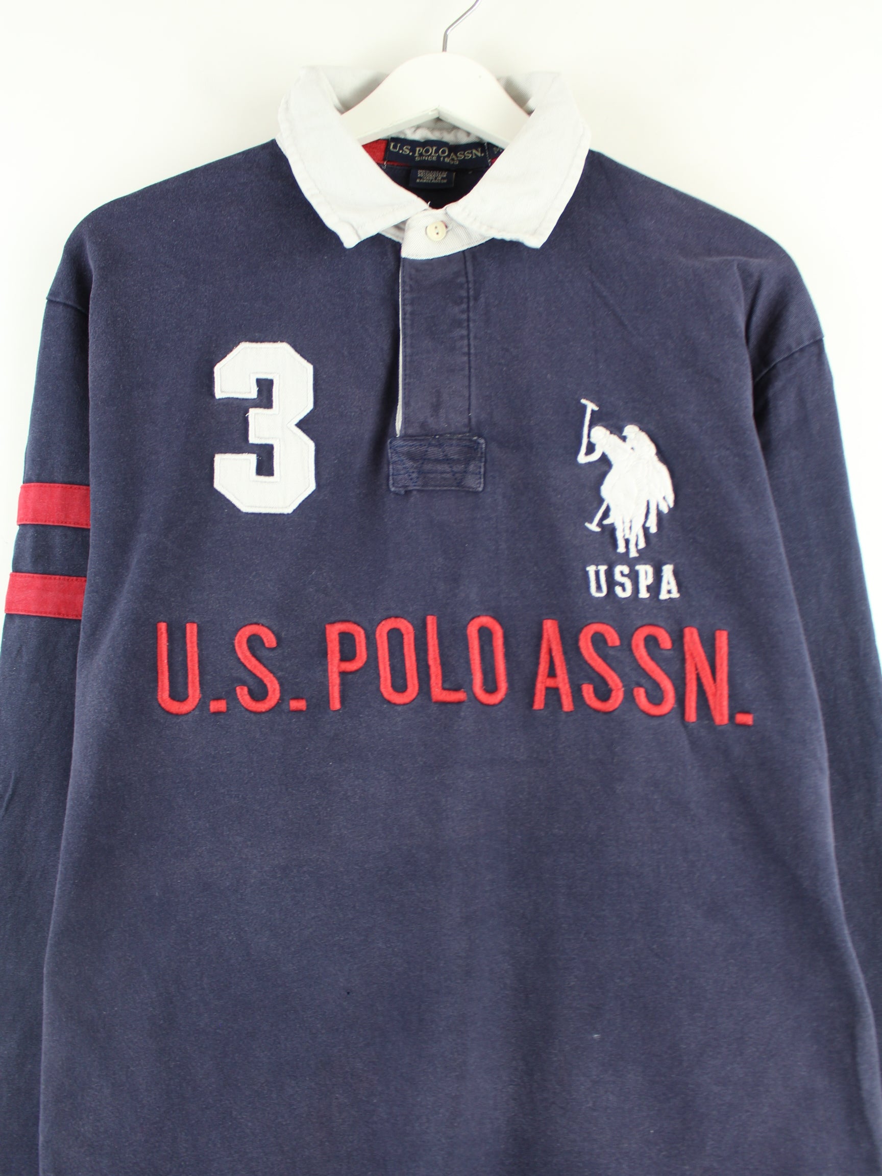 U.S. Polo ASSN. y2k Embroidered Langarm Polo Blau M