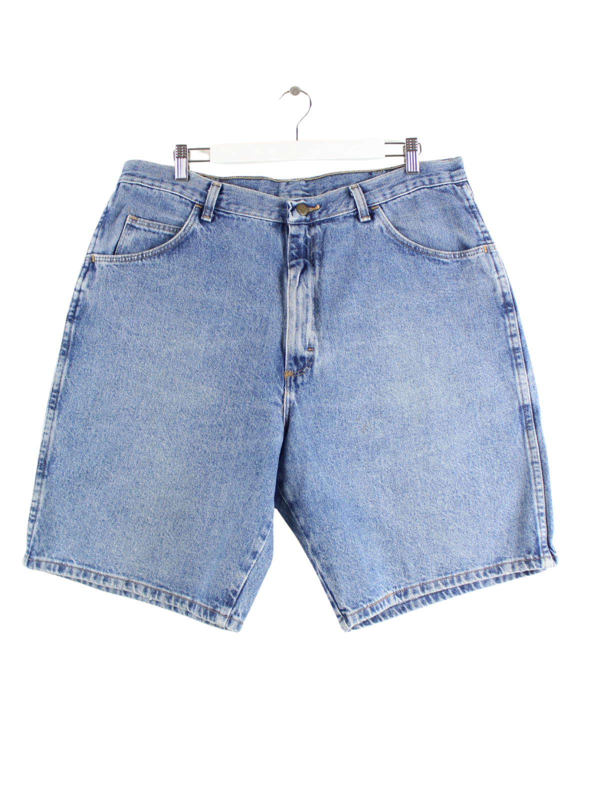 Blaue Shorts von Wrangler aus Anfang der 2000'er in Größe W36. Sie sind aus Baumwolle hergestellt und in sehr gutem Zustand im Bestand.