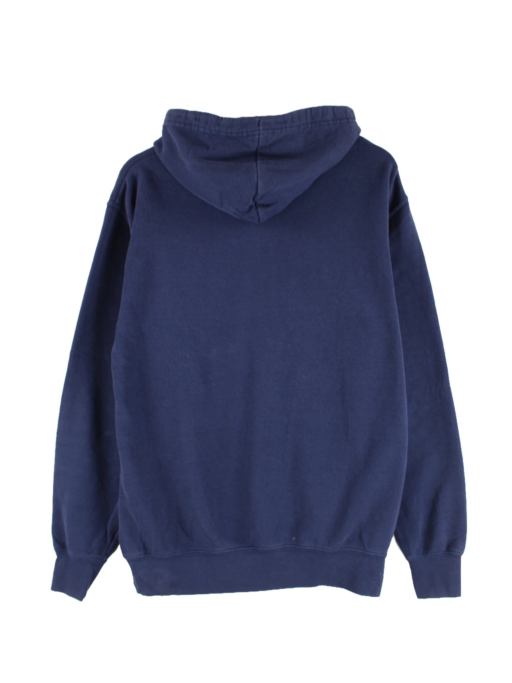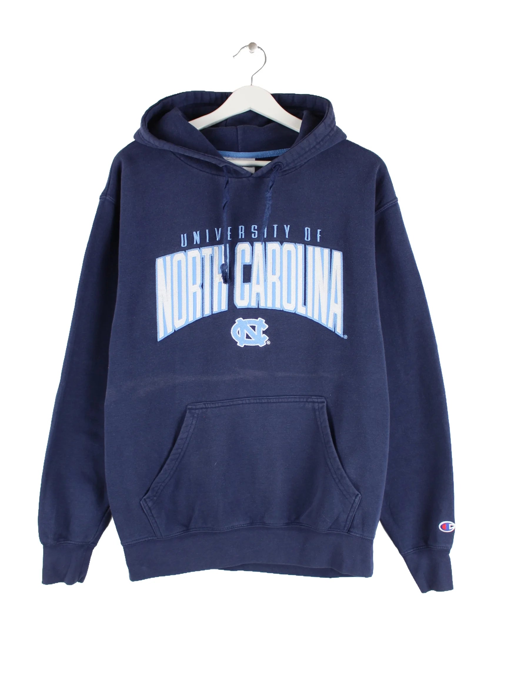 Hoodie der Marke Champion in Größe M. Er ist aus einer Baumwollmischung gemacht und in Blau lieferbar.