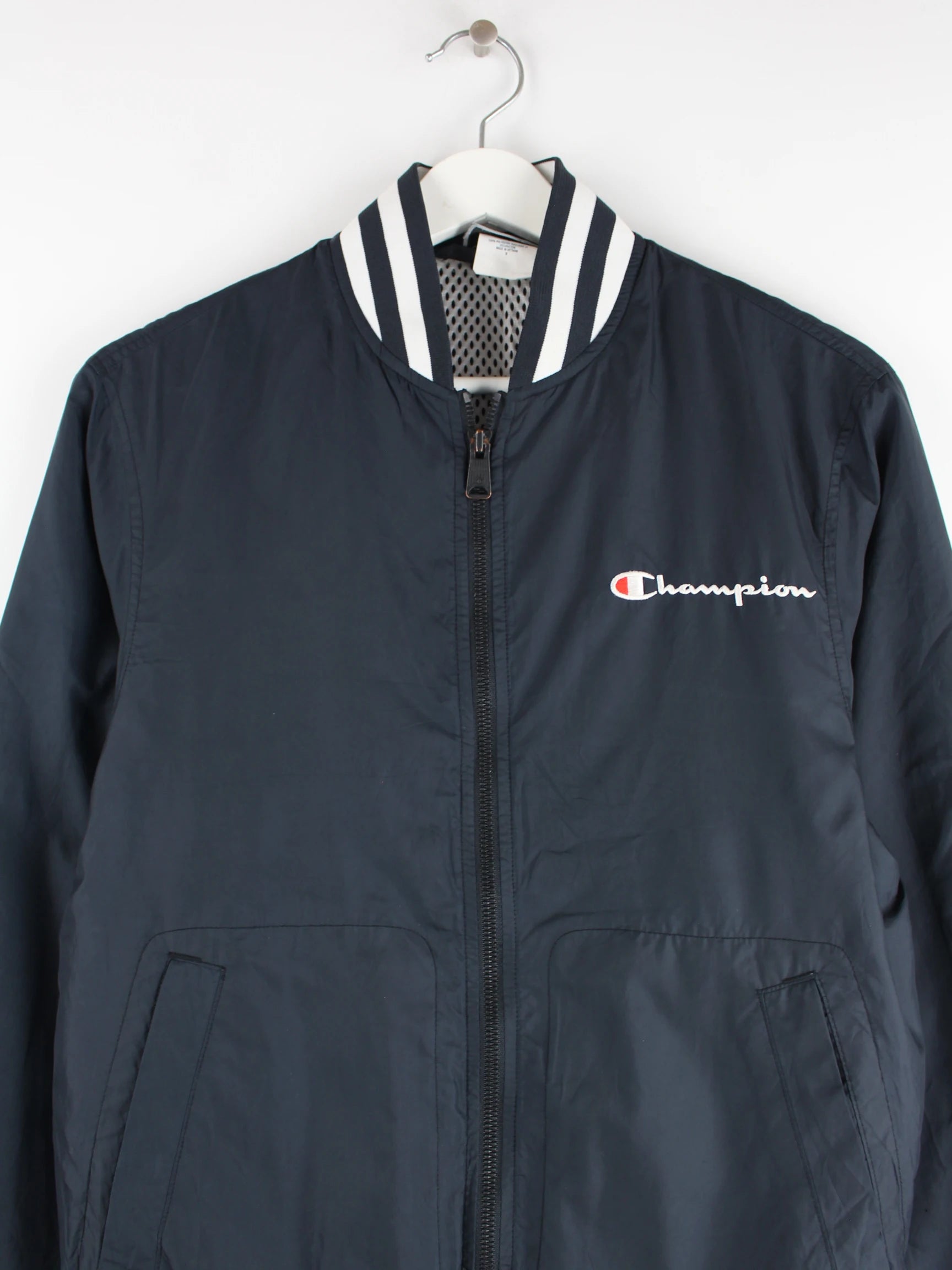 Blaue Leichte Jacke der Brand Champion in Größe S. Sie ist aus Synthetik gefertigt. Den Zustand würden wir als 'In Ordnung' bezeichnen (vergl. Bilder).
