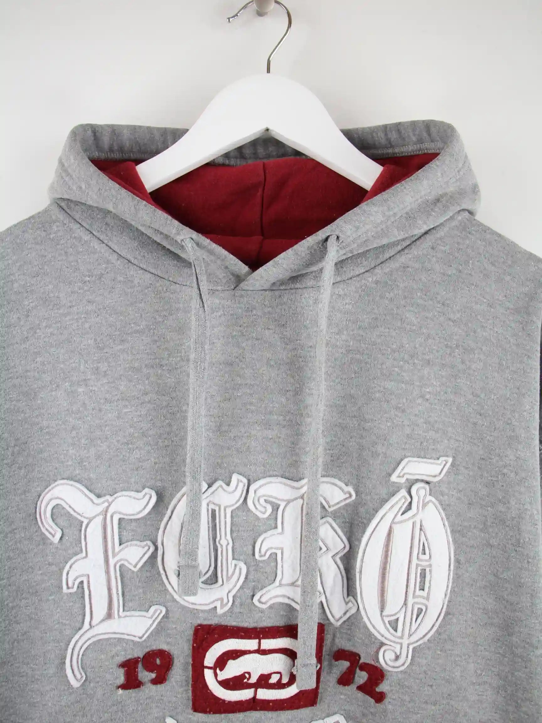 Hoodie des Labels Ecko in Größe 3XL aus Anfang der 2000'er. Er ist aus einer Baumwollmischung produziert und in Grau in Stock.