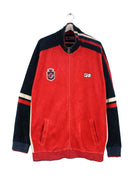 Rote Sweatjacke des Labels Fila aus Anfang der 2000'er in Größe XXL. Sie ist aus einer Baumwollmischung produziert und in gutem Zustand lieferbar.