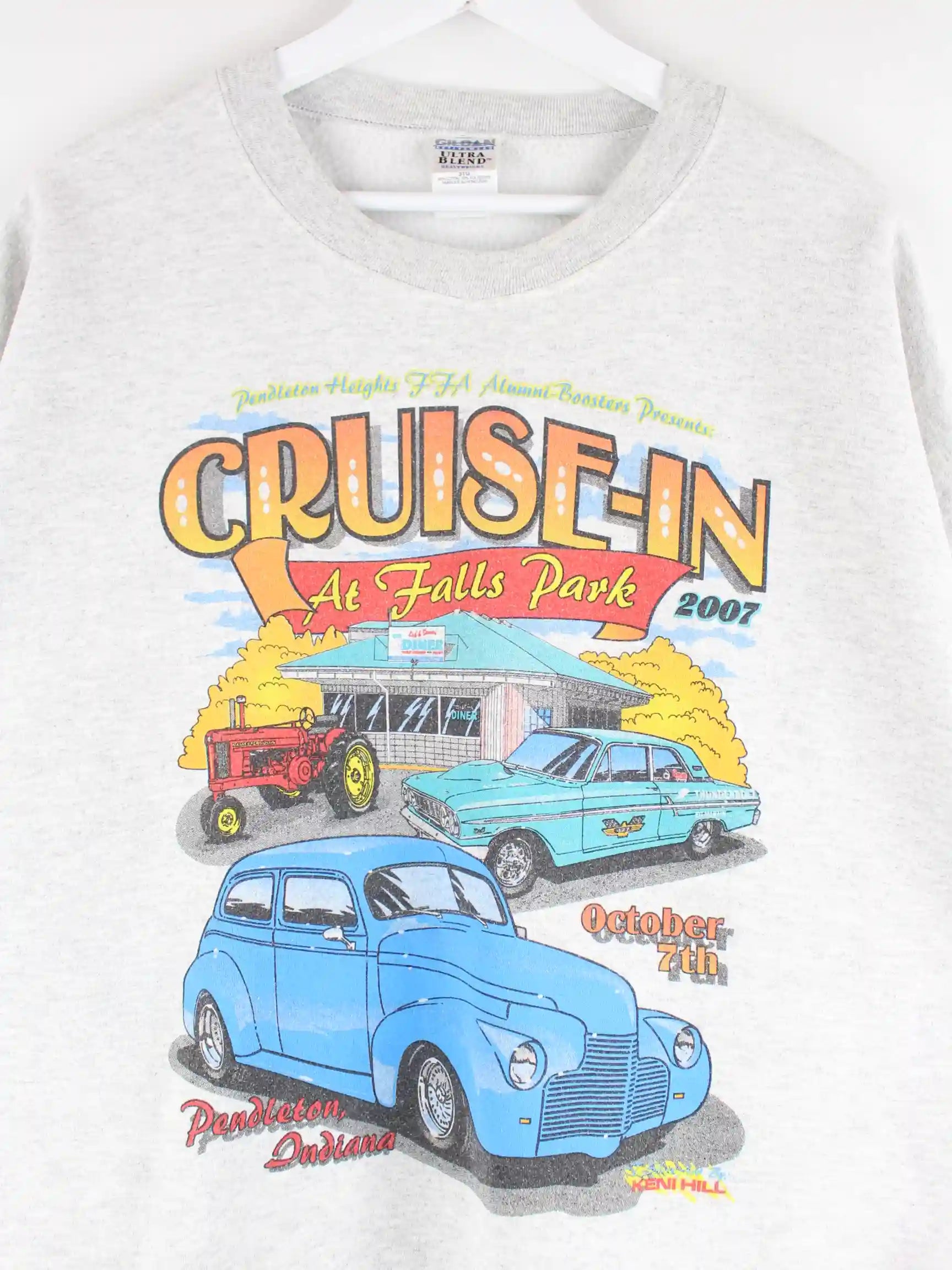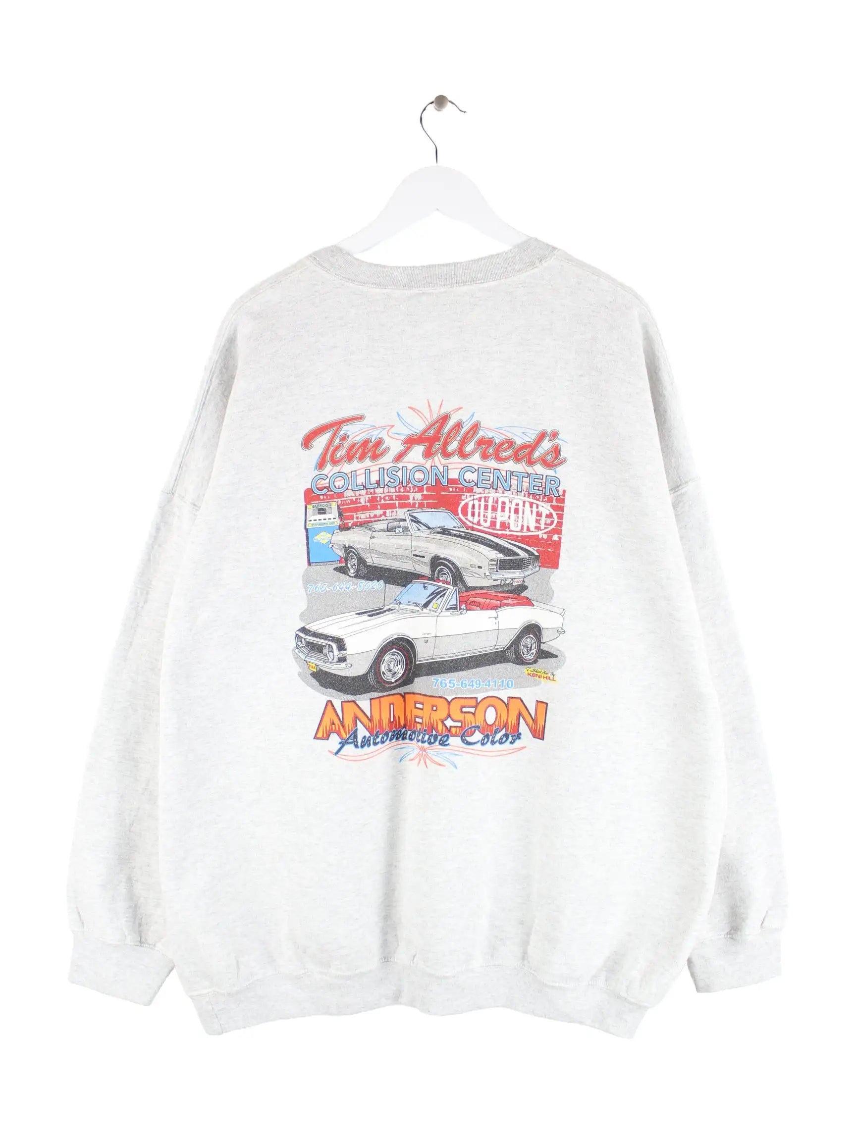 Sweater vom Label Gildan in Größe 3XL. Er ist aus einer Baumwollmischung hergestellt und in Grau vorrätig. Mit tollem Car Print.