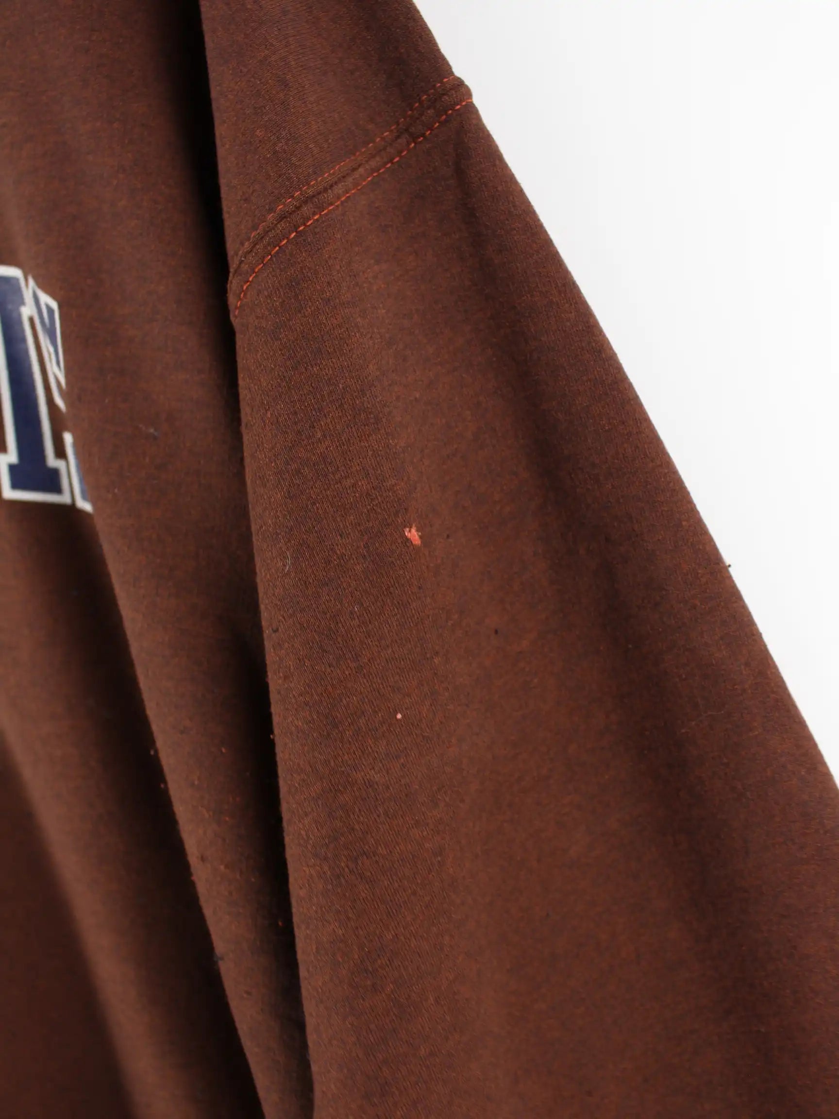 Brauner Sweater aus dem Hause Gildan in Größe XL. Er ist aus einer Baumwollmischung produziert und in gutem Zustand zu haben. Mit tollem Illinois Print.