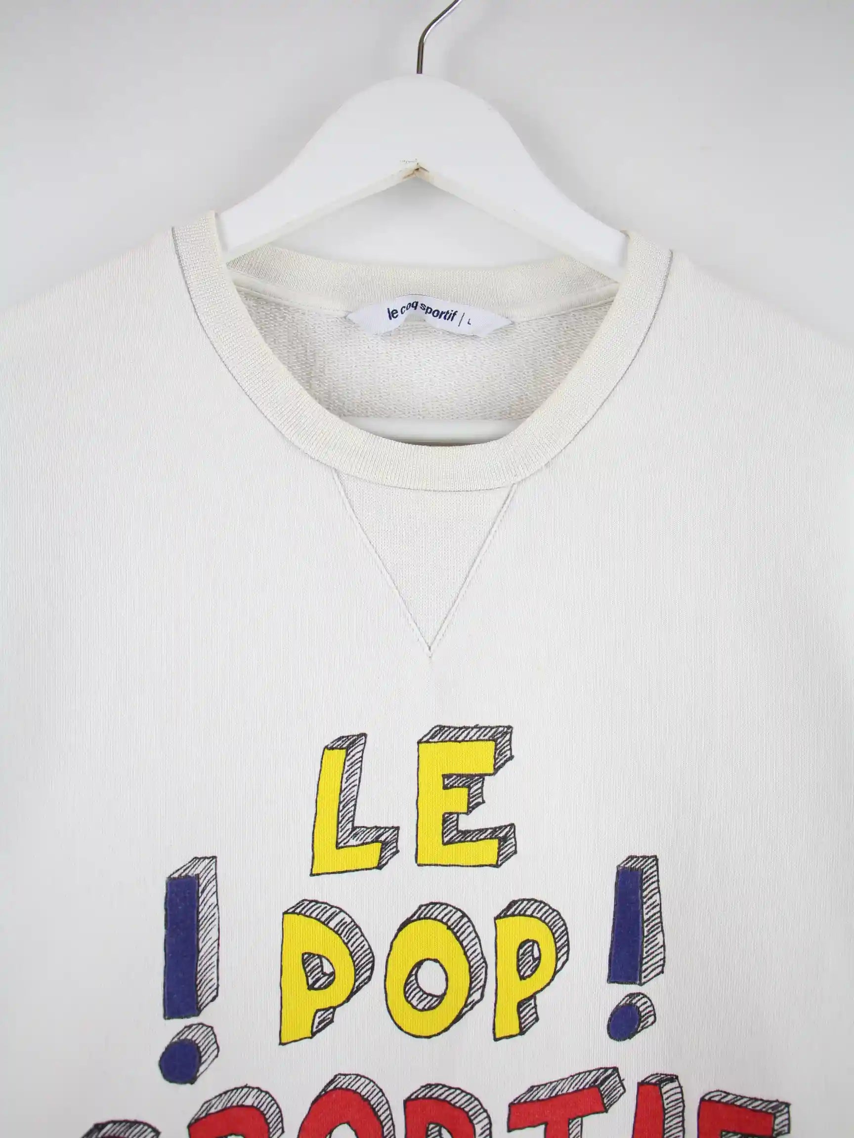 Sweater von Le Coq Sportif in Größe L. Er ist aus einer Baumwollmischung und in Weiß in Stock. Mit chiquem Print.