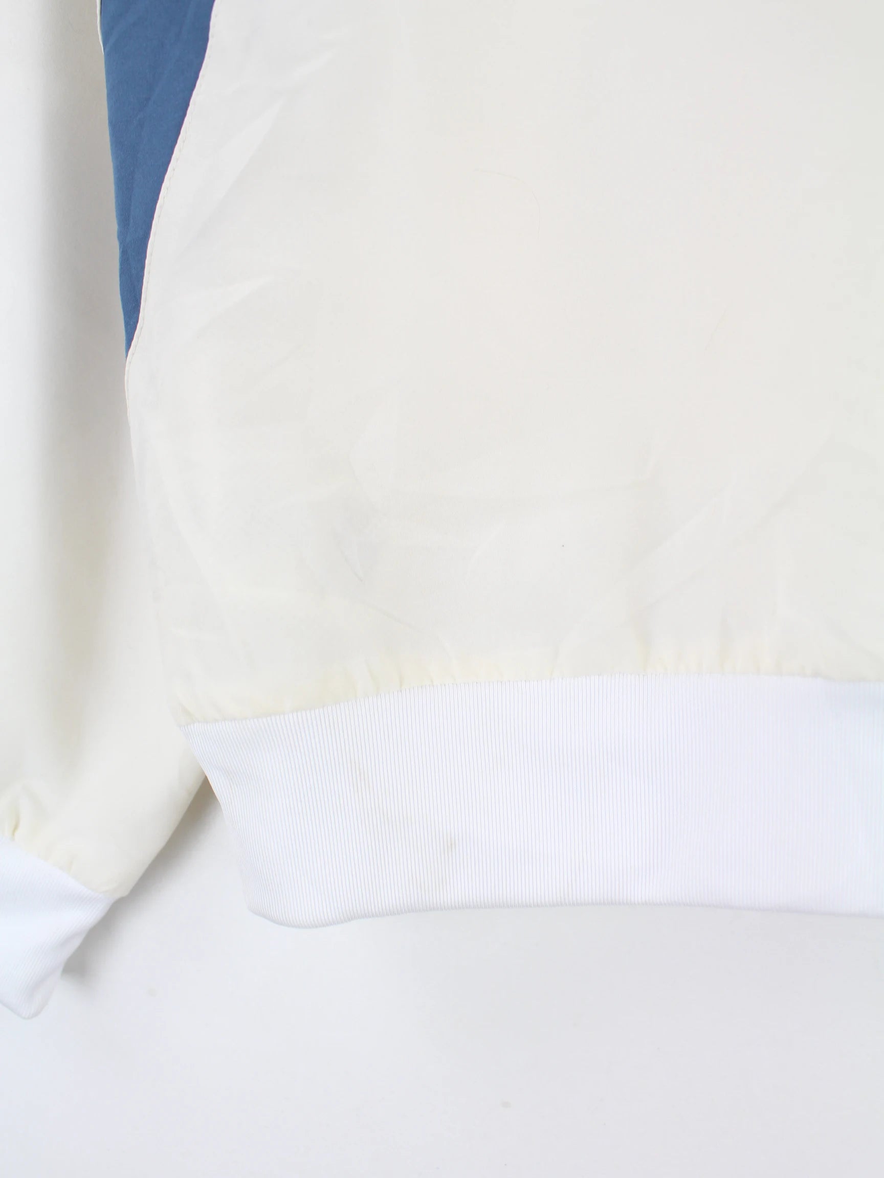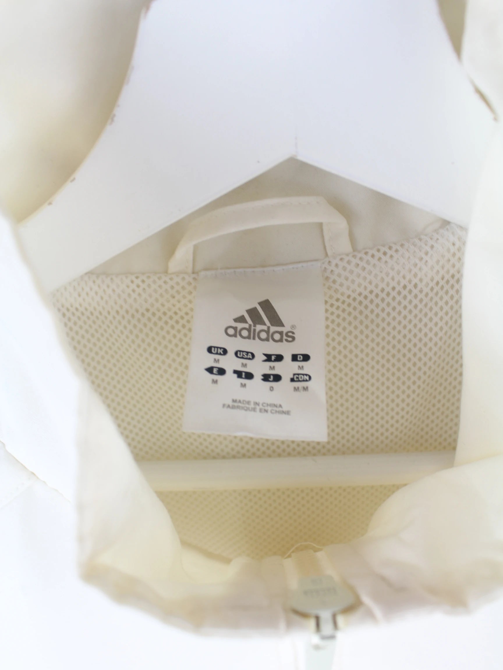 Weiße Trainingsjacke aus dem Hause Adidas in Größe M. Sie ist aus Synthetik gefertigt und in gutem Zustand auf Lager.