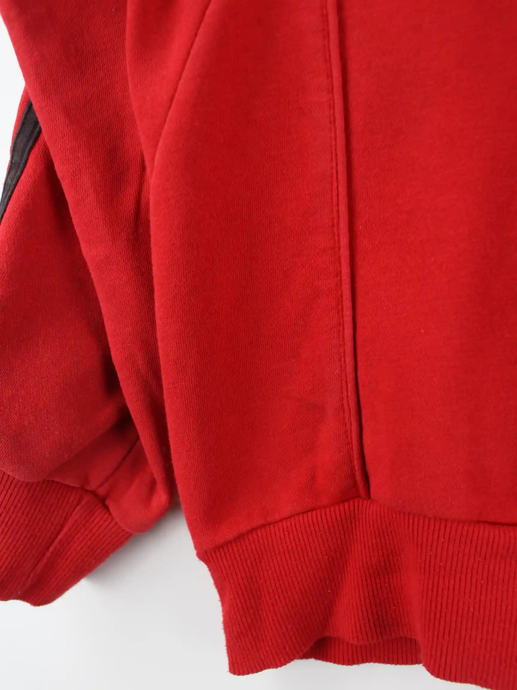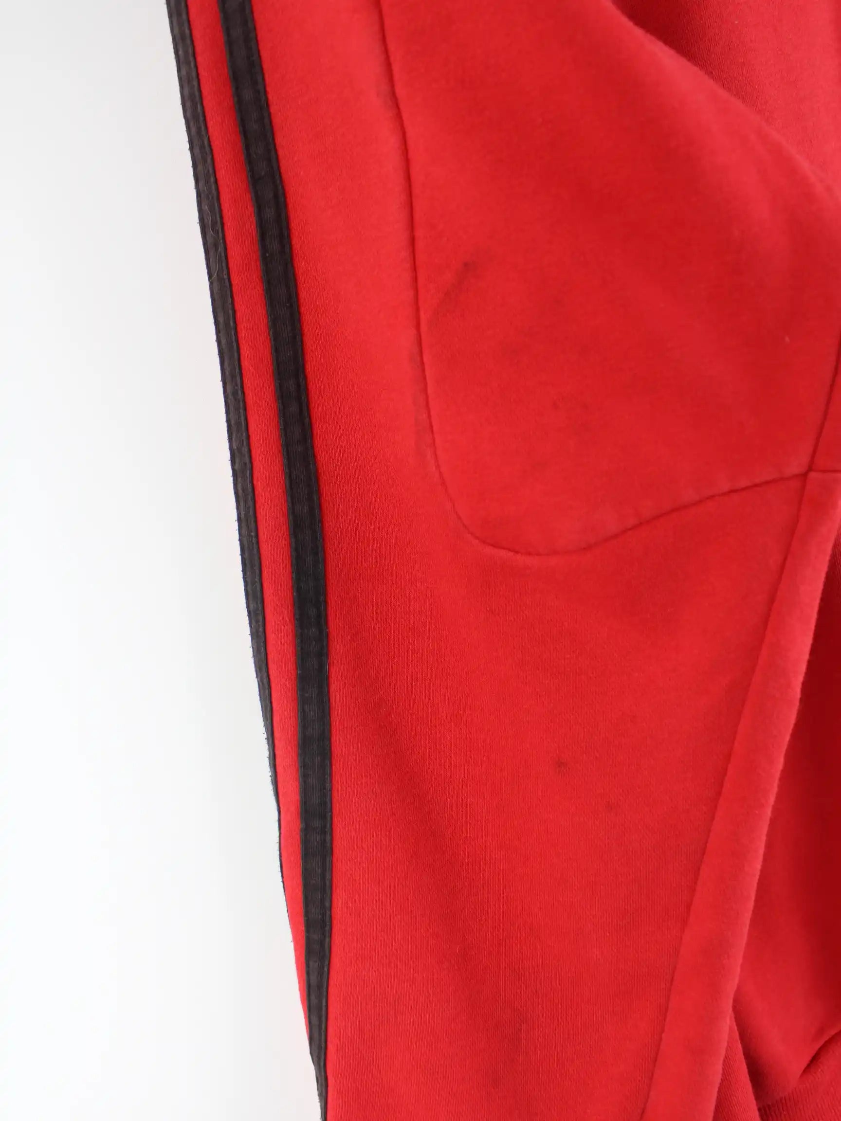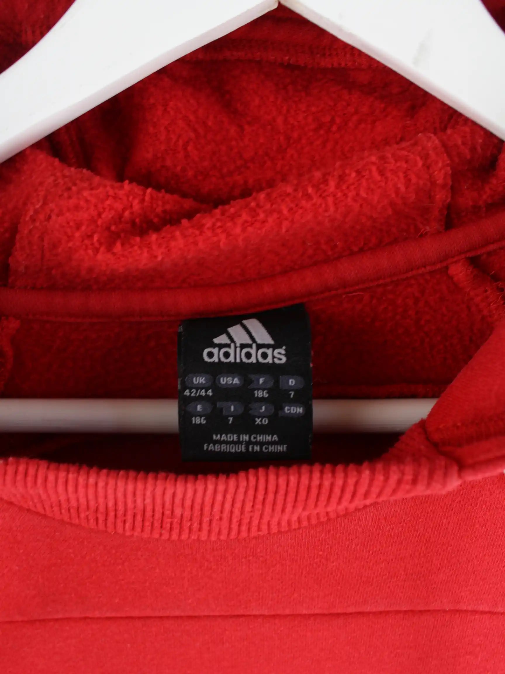 Roter Hoodie der Marke Adidas in Größe XL. Er ist aus einer Baumwollmischung hergestellt. Den Zustand würden wir als 'In Ordnung' bezeichnen (vergl. Bilder).
