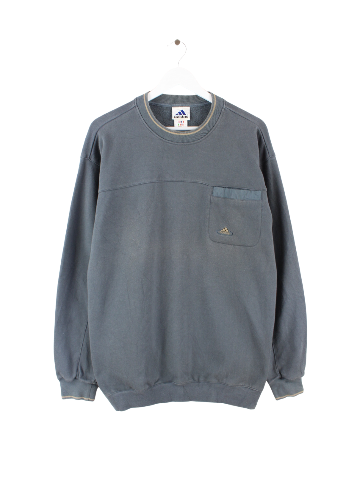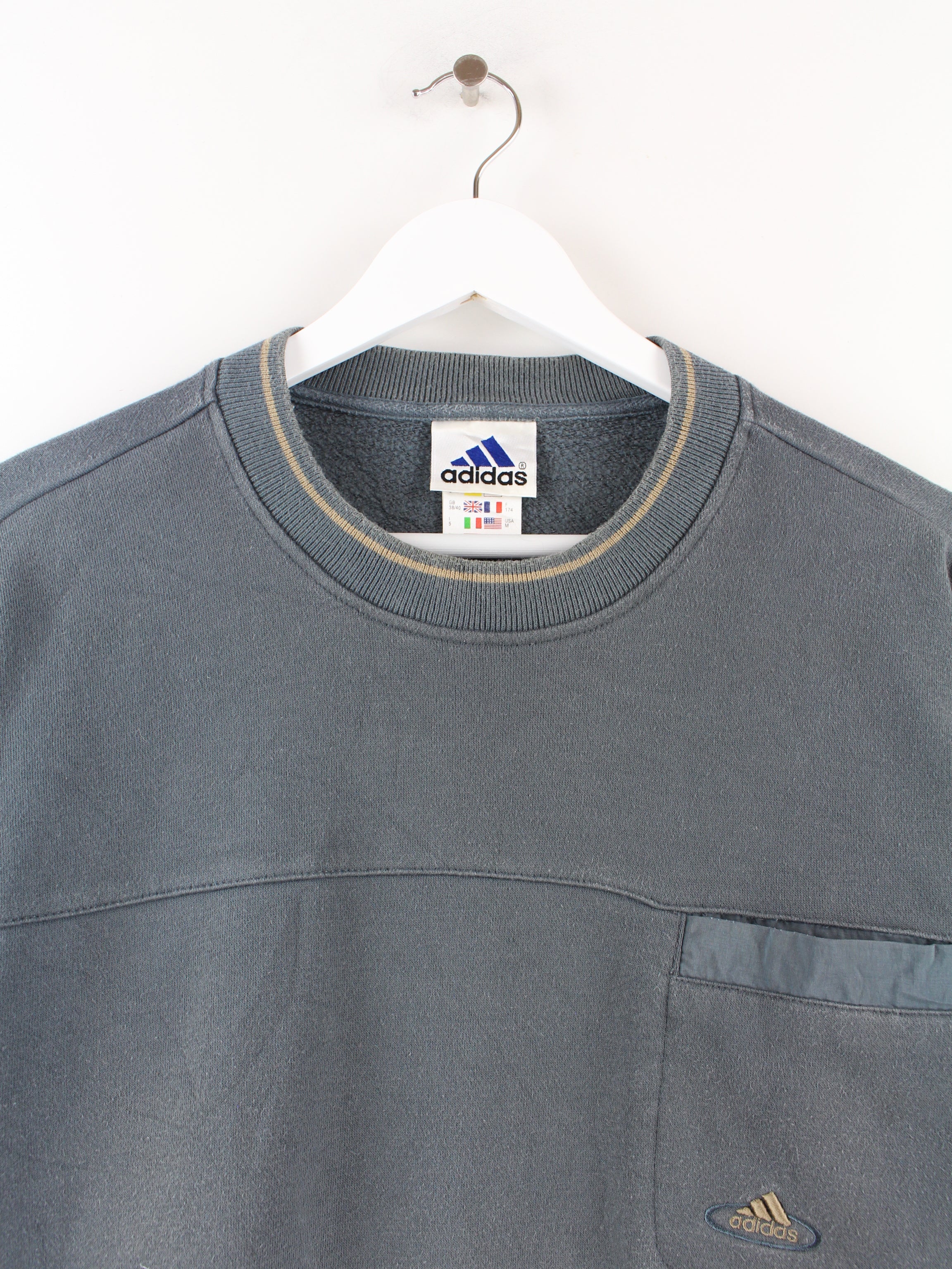 Grauer Vintage Adidas Sweater aus den 90er Jahren.